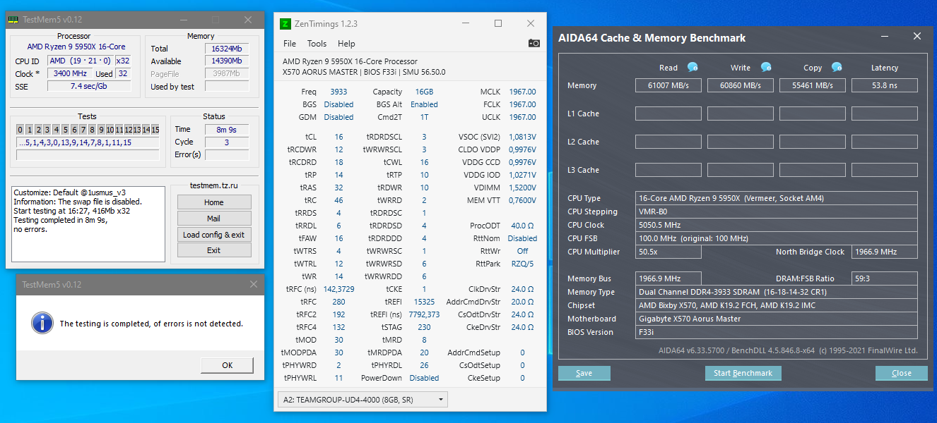 4. Перед настройкой частоты и таймингов рекомендуется установить принудительное охлаждения на модули памяти, особенно для памяти с чипами Samsung B-die, повышение температуры памяти выше 48°, может сопровождаться дополнительными ошибками, не связанными с неправильной настройкой таймингов, что затруднит их поиск и общую настройку памяти.