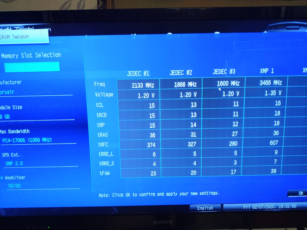 CPU Name: Intel® Core™ i7-7740K CPU @ 4.30GHz Motherboard Model: MSI X299 GAMING PRO CARBON AC (MS-7A95) Total Size: 8192 MB Type: Single Channel (64 bit) DDR4-SDRAM Frequency: 2750 MHz - Ratio 1:31 Timings: 21-31-31-63-2 (tCAS-tRC-tRP-tRAS-tCR) Slot #1 Module: G.Skill 8192 MB (DDR4-2137) - XMP 2.0 - P/N: F4-3200C14-8GVR