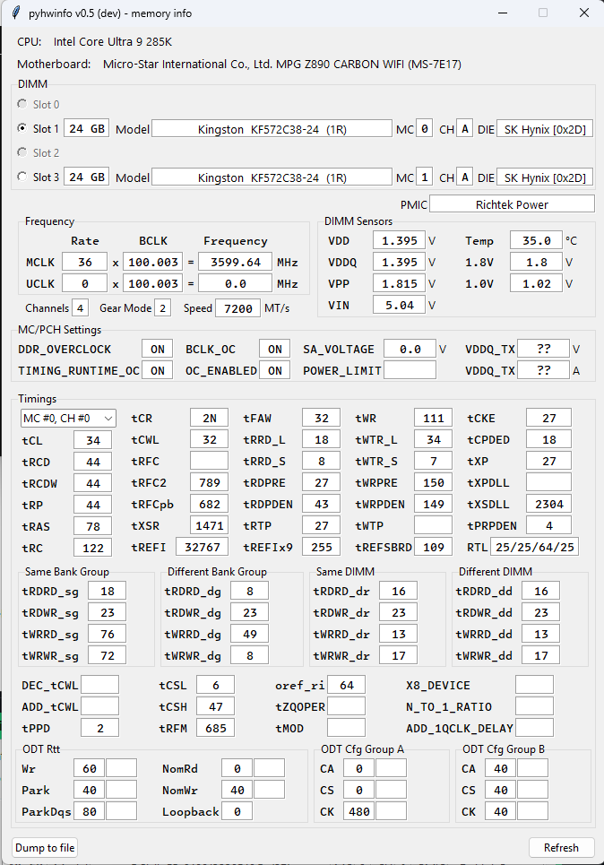 Сейчас добавил в pyhwinfo первичную поддержку для Arrow Lake. Но по ODT параметрам наверняка врёт (выставил смещения примерные). Кароче, нужны тесты, т.к. я не собираюсь 15th gen покупать.