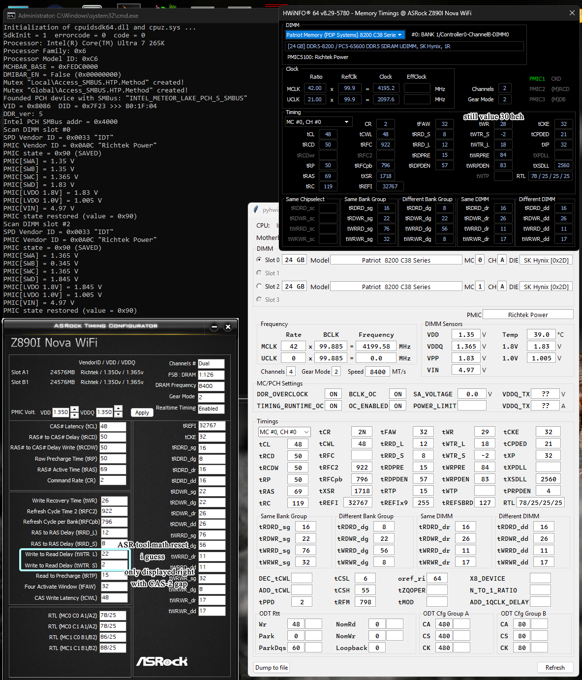 Есть над чем задуматься. И чел, который мне скрины эти скинул, заметил, что скорее всего на Arrow Lake значение BurstLength другое и не является константой для всех каналов (там контроллеры по иному работают с DRAM).