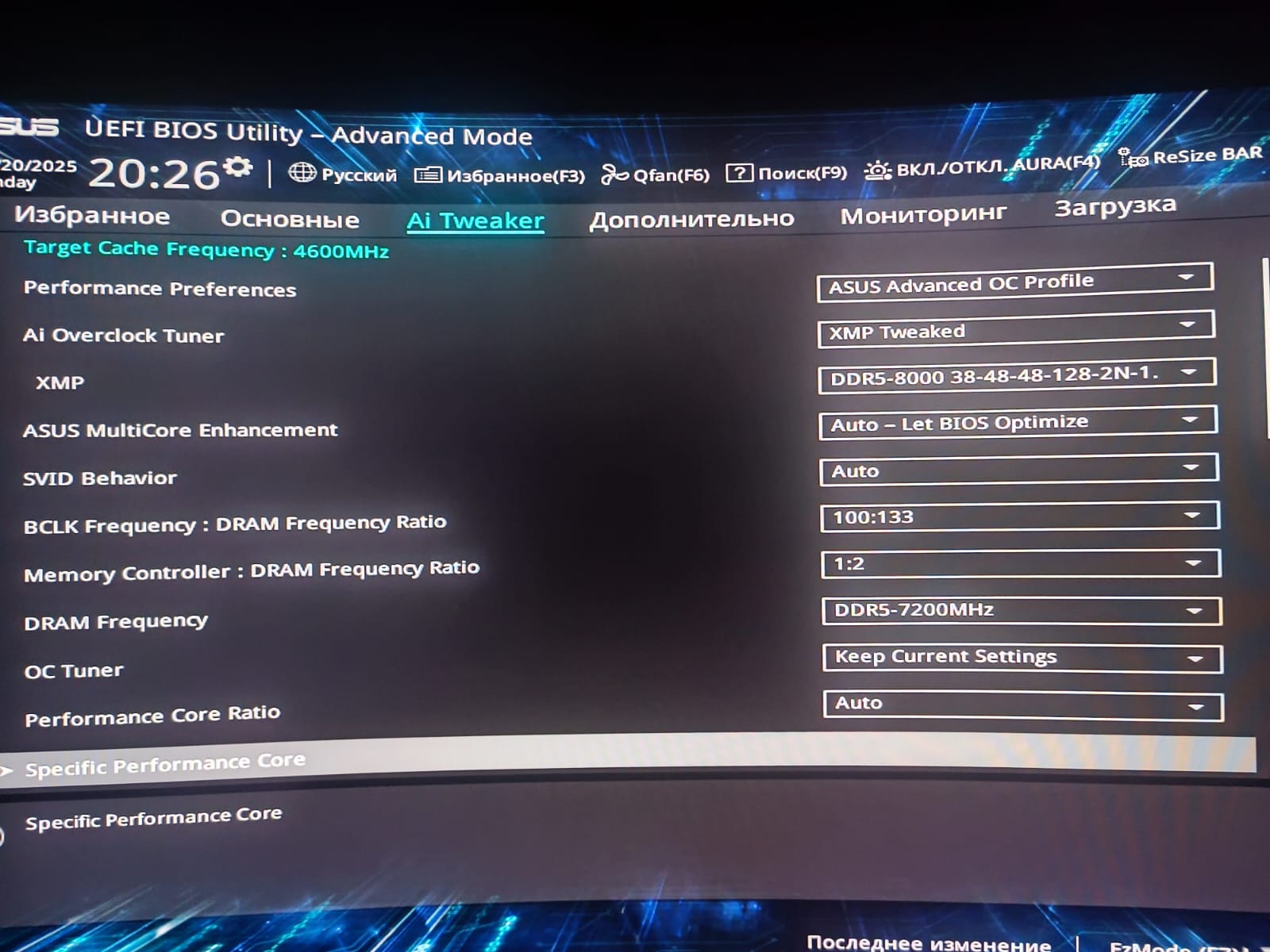 Добрые люди, помогите пожалуйста советом или билдом, устал я уже какой день менять тайминги, напряжения, тестить, читать всё новые и новые страницы данной темы, уже снятся форум, TM5 и Aida бенч! суть проблемы: имею материнку Asus Prime Z790-P + i7-13700F, приобрёл недавно DDR5 8000MHz KingBank SK Hynix M-Die CL-38-48-48-128 2х24 Gb, которая на моей материнке под 8000 не запустилась, так же как на 7800-7600-7400, на 7200 стартанула, НО либо проходит тесты в TM5 и Karhu, но при этом огромная латенсия и малая скорость чтения/записи/копирования, либо наоборот, но тесты не проходит! Сейчас имею вот такие тайминги, латенсию, Dram VDD=1.35, VDDQ=1.3, tREFIx9=255, посмотрите и посоветуйте пожалуйста где ещё поковырять и куда посмотреть
