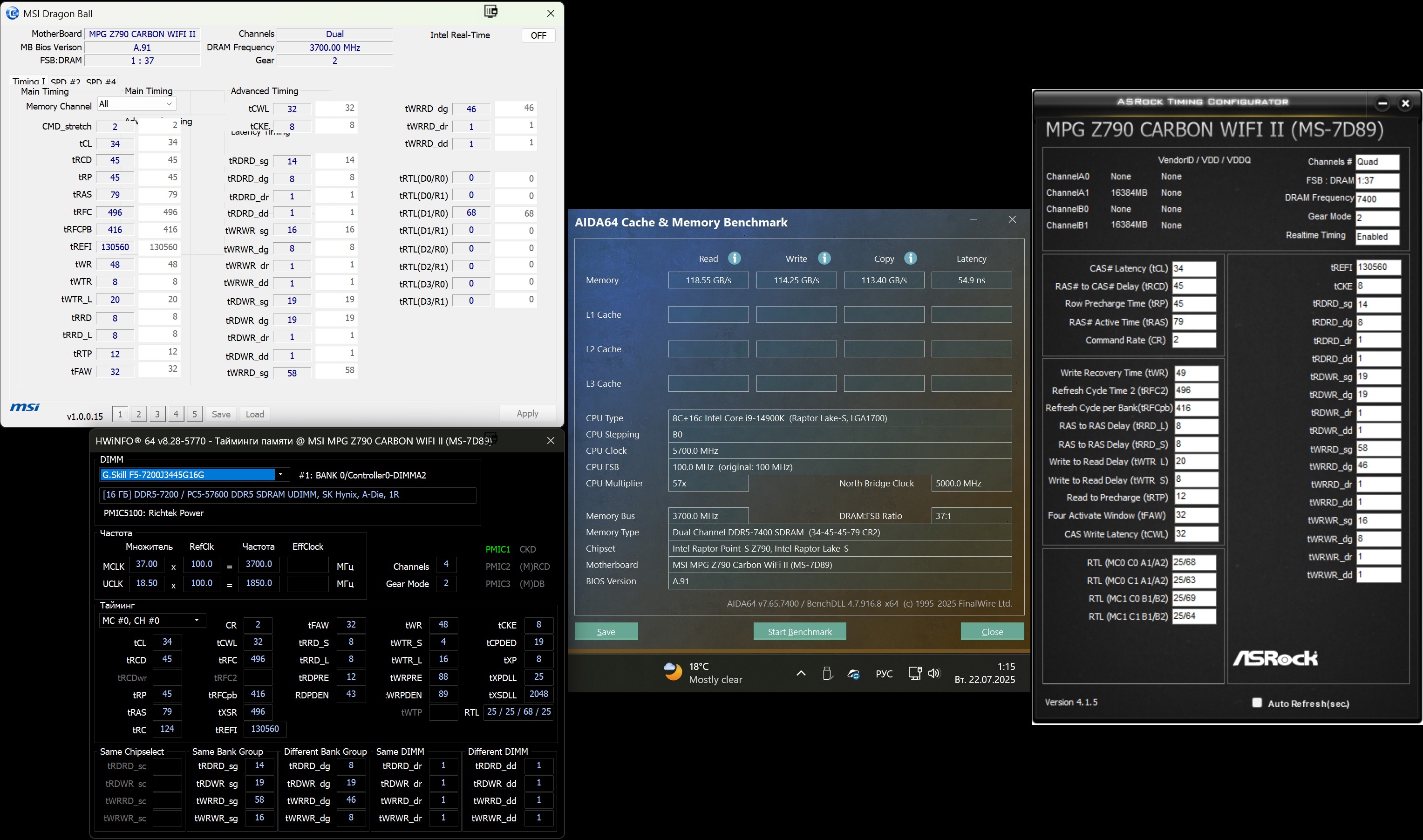 Ясно, как новый биос выйдет, попробую ещё поковырять, как раз повод будет. А то уже заколебался, почти неделю убил, во-первых, первый раз ddr5 после четвёртой пощупал, во-вторых, первый раз увидел биос MSI после ASUS. Плата, смотрю, такая же, а вольтажи sa, tx, vdd2, vddq и vdd какие у вас на этих таймингах?