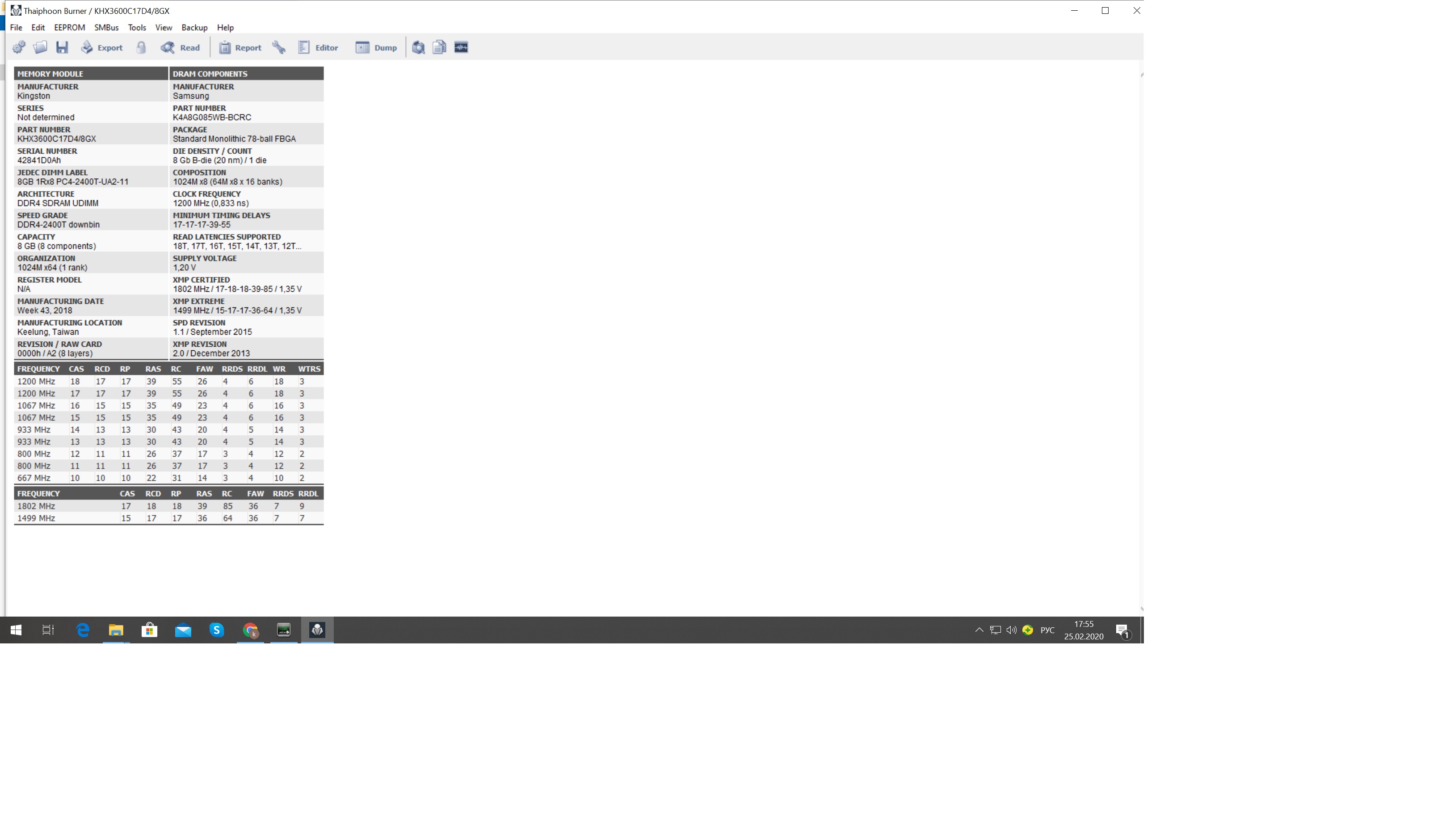 [img]Ссылка на скрин[/img] Для сбора статистики по установленным чипам памяти просьба прикладывать скрины программы Taiphoon Burner и указывать напряжения на DIMM, IO и SA![/color]