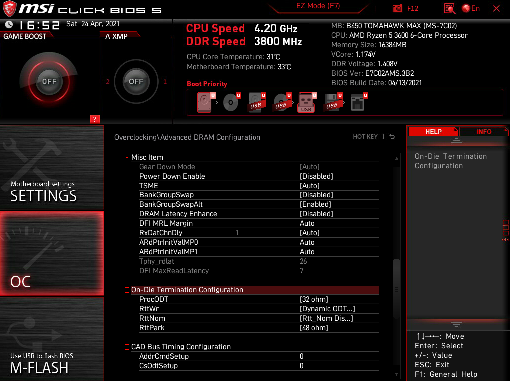 Я решил не пытаться стабилизироваться с GDM off, тк по всей видимости это невозможно. Следовал всем твоим рекомендациям, увеличивал тайминги и напругу - все без толку. Вместо этого я сфокусировался на полировке уже достигнутого и приближении к 4000/2000. Как буду доволен - поделюсь всеми результатами. Увидел в биосе интересную настройку "Latency Enhance". Положений у нее три: "on" "off" и "msi setting", при этом под ней есть еще несколько настроек, которые при "msi setting" становятся серыми. При необходимости могу заскринить. Что-нибудь про этот Latency Enhance знаешь? Я ничего толкового ни в теме, ни в других местах не нашел.