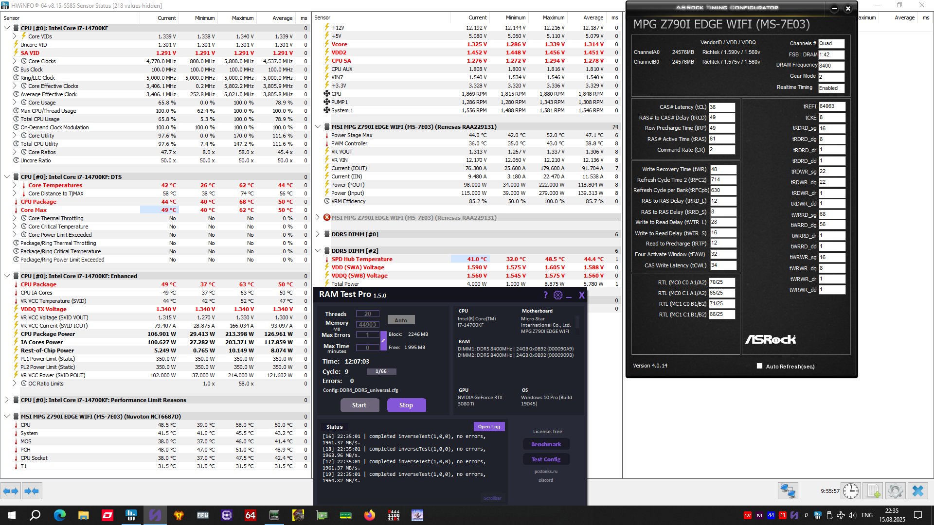 из-за чего разброс такой может быть? са\тх не нащупал нужные или тайминги пережал какие может? в фоне ничего не висит, тротлинга нет, тм5 экстрим 12 часов без ошибок sa 0.95 tx\vdd2 1.2\1.35 dram vdd\q 1.41\1.35