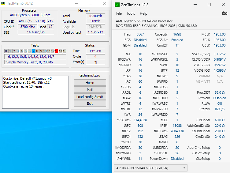 smile-777 Ну придет новая память посмотрим чего там. Пока оставил 3600cl14 при 1.47V проходит 25 циклов в тм5. Ну и на IF1933 при тесте памяти за 25 циклов 10 ошибок и 4 WHEA Даже с такими слабыми вторичками нет стабильности. И 17-17-21-17-40-62 и tFAW 24 тоже не помогает.
