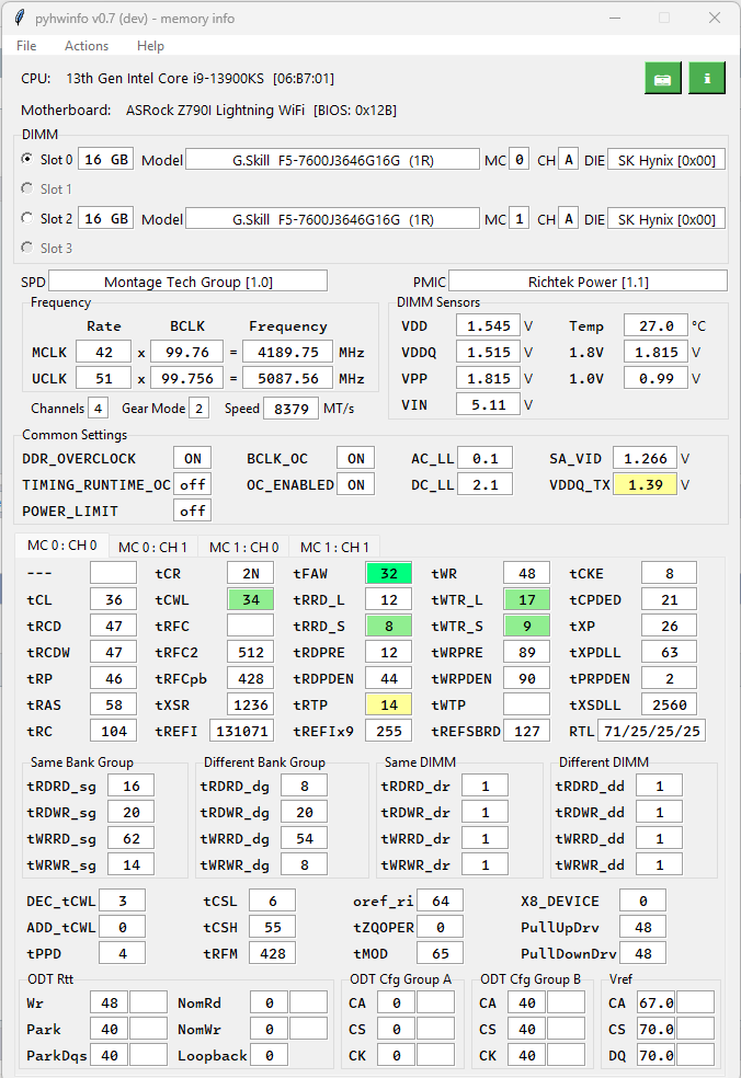 эти значения одинаковые при переключении MC# CH# в pyhwinfo?