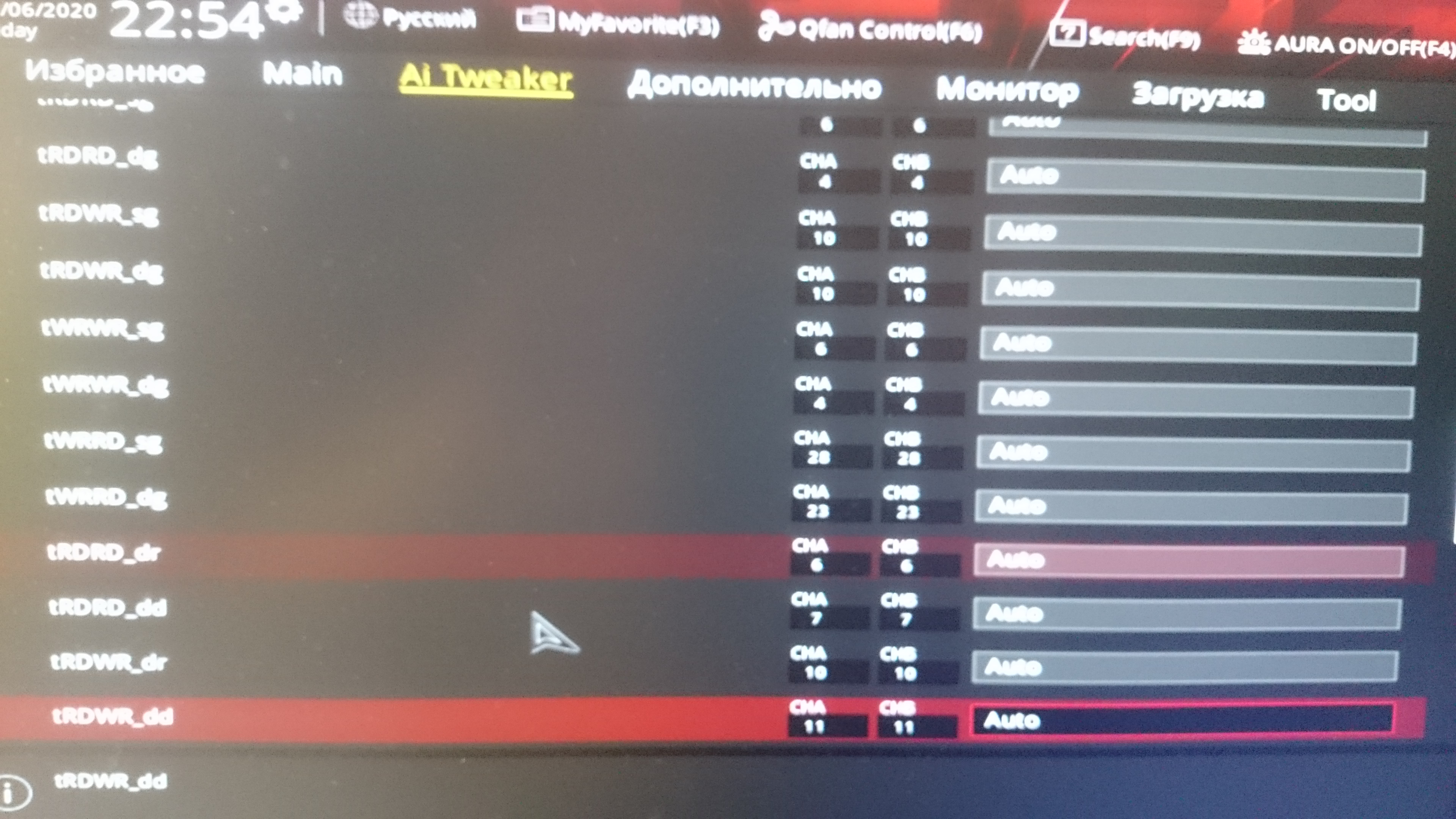 По данным все сделал 1 к 1. Не запускается вообще.. Не на 4000,не на 3800,3700. с 4000 16-16-16-36 cr2, на память 1.43-1.45В, SA/IO 1.22, tWR 16, tCWL 16, tRTP 8, tWRPRE 36, tRDPRE 8. Только эти 2 значения из списка нашел.. tWRPRE 36, tRDPRE 8. А tWR вообще полно. Не знаю какие и менять-) Вот , Посмотрите.
