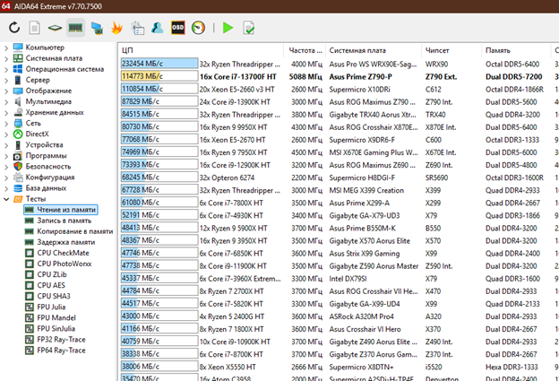 Это Аида и есть 7.70.7500 Экстрим, тест кэша и памяти, 4-я сверху иконка, просто я ёё обрезаю, чтобы меньше места занимала, и отдельные тесты - снизу слева. Вот целиком - железки одни и те же, просто сейчас 32-42-42-42-54 разрабатываю: