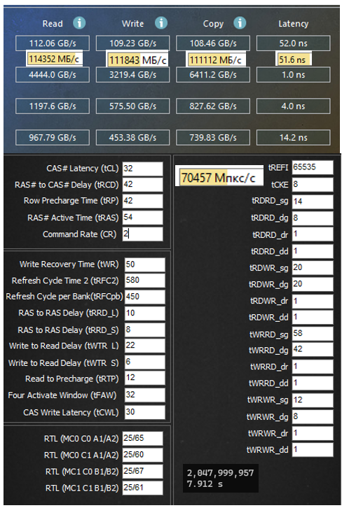 Ага интересны тайминги а лучше скриншот Аиды. У меня почему то таких значений получить не удается.