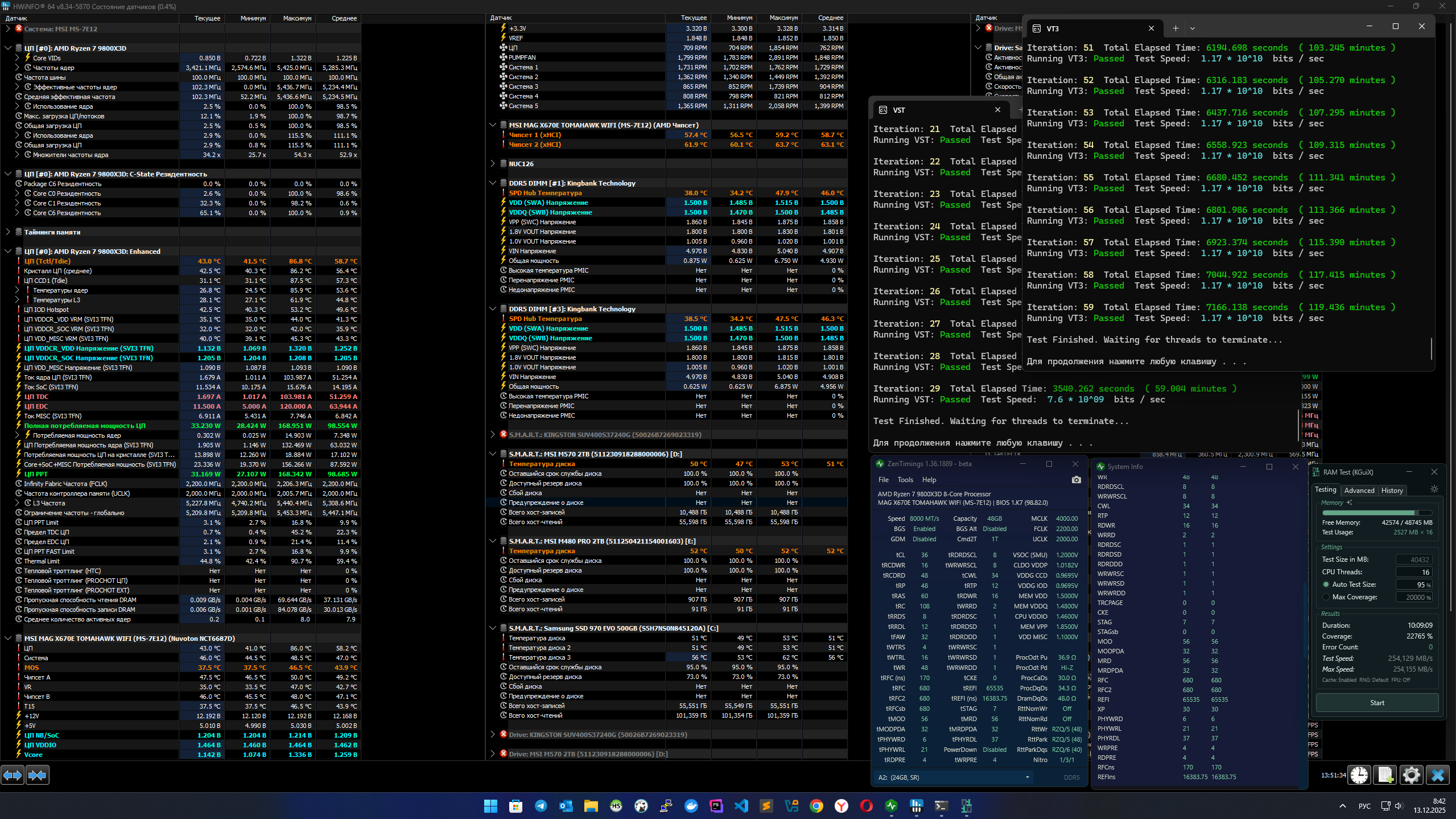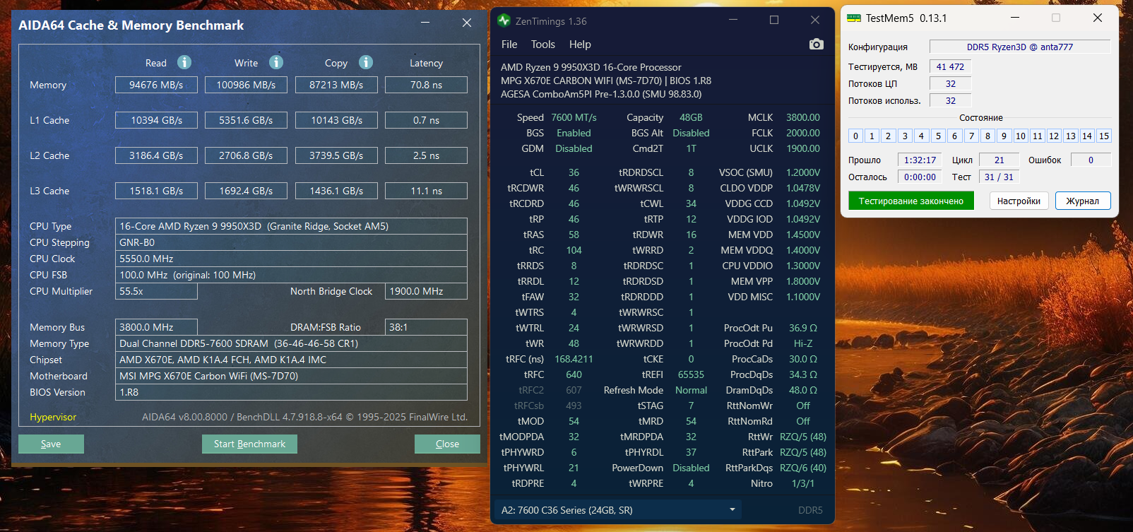 Попробовал на последнем биосе 1.3.0.0 достичь стабильной работы памяти на частоте 8000 Мг с первым таймингом cl 36. О такой частоте я могу только мечтать, система загружается но не о какай стабильности речи нет, либо материнка с четырьмя слотами не дает либо для оперативки такая стабильная частота недостижима. Все что смог выжать 7600 Мг.