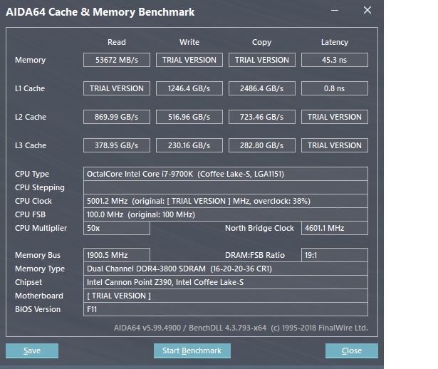 CPU Name: Intel® Core™ i7-7740K CPU @ 4.30GHz Motherboard Model: MSI X299 GAMING PRO CARBON AC (MS-7A95) Total Size: 8192 MB Type: Single Channel (64 bit) DDR4-SDRAM Frequency: 2750 MHz - Ratio 1:31 Timings: 21-31-31-63-2 (tCAS-tRC-tRP-tRAS-tCR) Slot #1 Module: G.Skill 8192 MB (DDR4-2137) - XMP 2.0 - P/N: F4-3200C14-8GVR