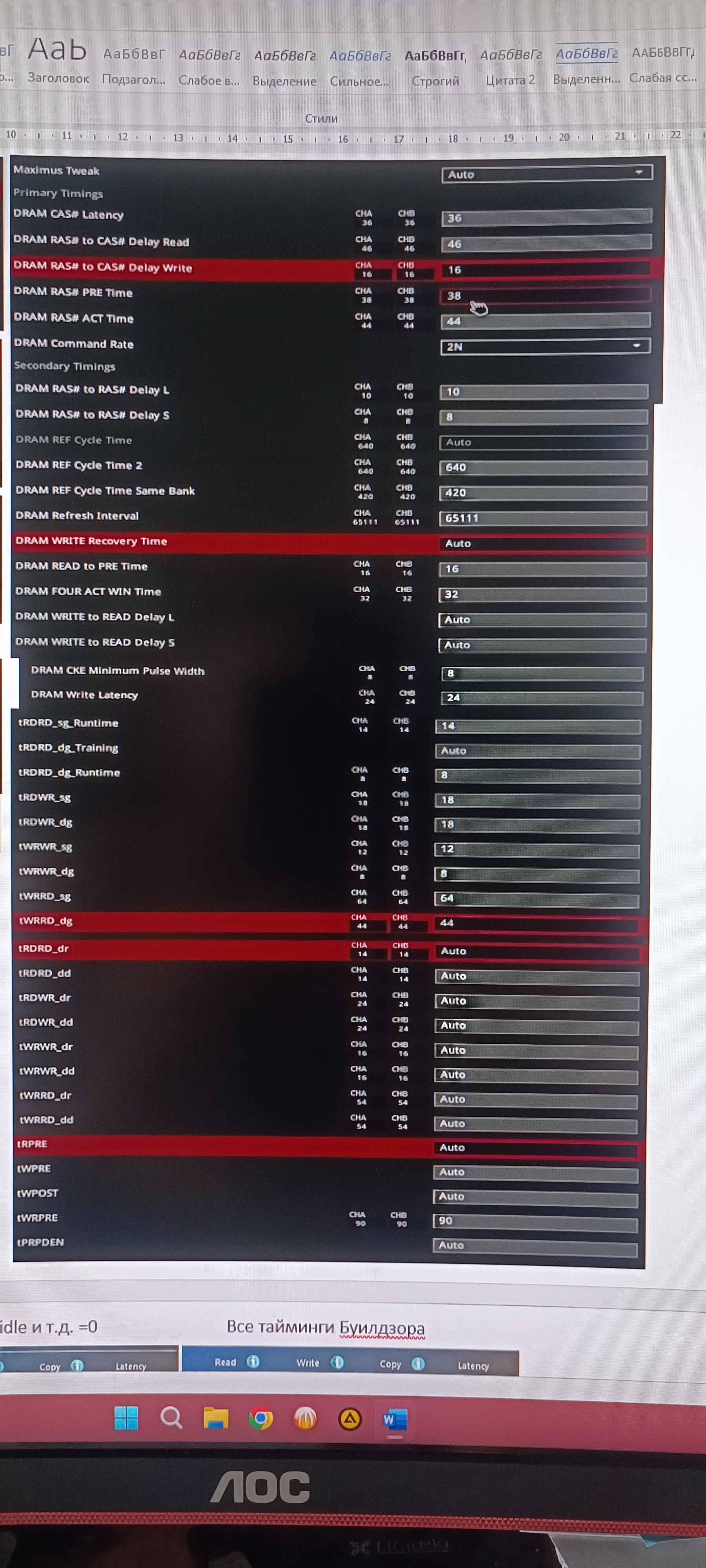 И если хочешь красивые цыфырки то отключай весь фон, начиная с защитника виндоуз и заканчивая удалением софта с подсветкой ddr, армори крате и аура клитор очень хорошо кушают латенсию 7-9ns