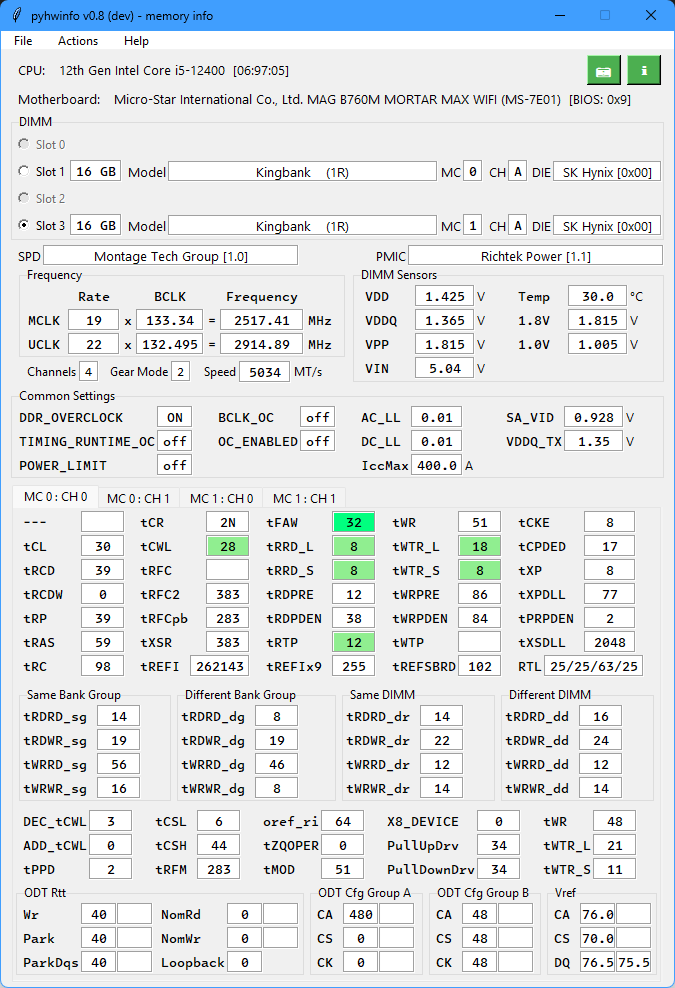 А у тебя тоже небинарки Кингбанки на 8000? У моей тайминги 38-48-48-128. И вот, кстати, да. На 7600, 7800 и даже, 8000 она заводится, но в тестмеме выпадает в ошибку. На 7800 быстрее, на 7600 чуть подольше держиться. Про 8000 даже и говорить не буду. Попробую твой конфиг на 7400 у себя запустить и погонять. Посмотрим, как себя поведёт...