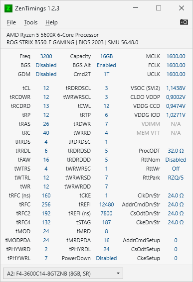 smile-777 Не знаю но без GDM в 1T она себя ведет ужасно даже на 3600. В 2Т на 3600 работает без GDM. Ну и там кроме первичек еще блок поменялся trrds_L tFaw