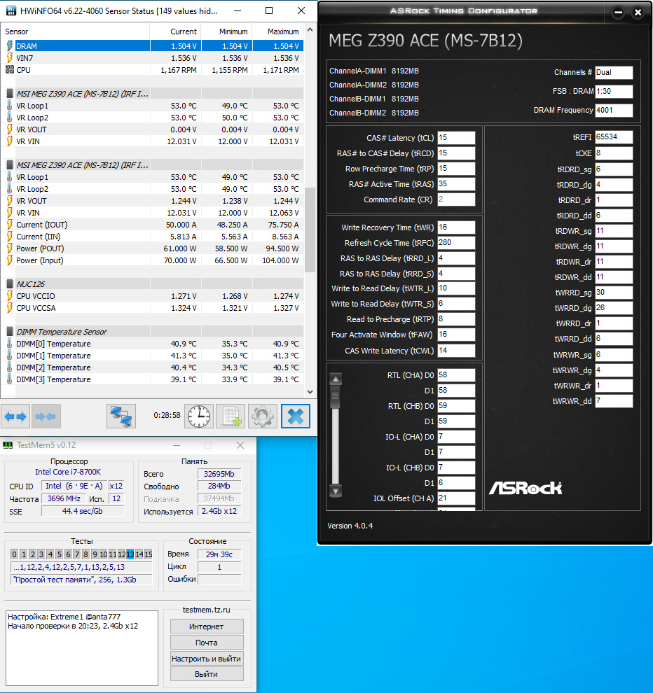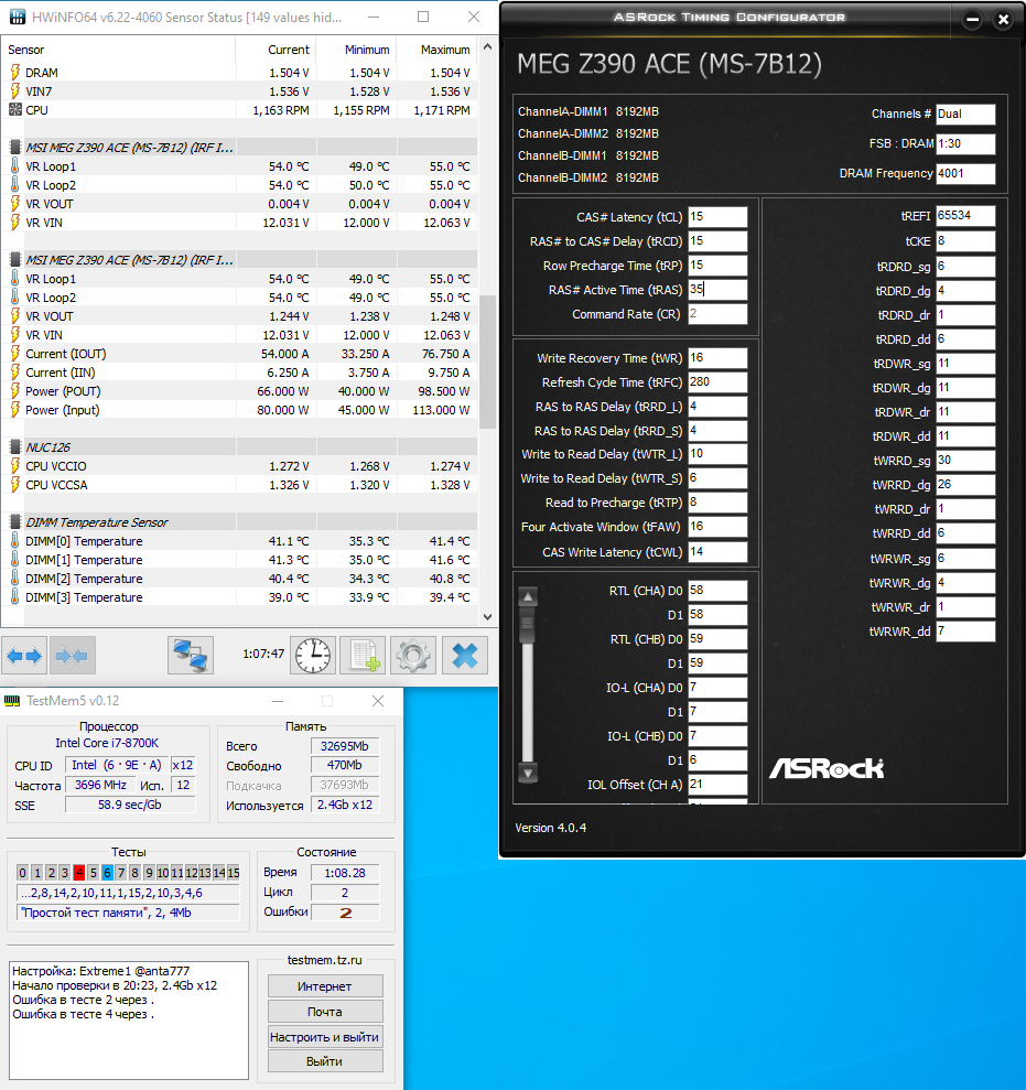 Ура. Первый раз прошел тм5хтрим. На 4000-16-16-16 (16-18-18 / 18-18-18) ни в какую не хочет тренить. А там где тренит то сыпятся ошибки в хтриме и вылетает любимая батла на рабочий стол без ошибок. DRAM 1.43 SA 1.25 IO 1.24