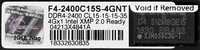 Сегодня просматривал каталог модулей памяти на сайте DNS. Наткнулся на весьма любопытный экземпляр G.SKILL F4-2400C15S-4GNT с неизвестными ранее микросхемами памяти. Микросхемы однозначно изготовлены не в цехах Samsung, Micron, SK hynix и Nanya. Lot Number XJH056C3G-T имеет характерный нулевой маркер, в кругу которого находятся 5 вертикальных линий. Такой маркер раньше был у Elpida. Учитывая, что Winbond и PSC официально не выпускают DDR4 микросхемы, а Elpida уже давно скикнулась, изготовитель данных микросхем остаётся пока неизвестным.