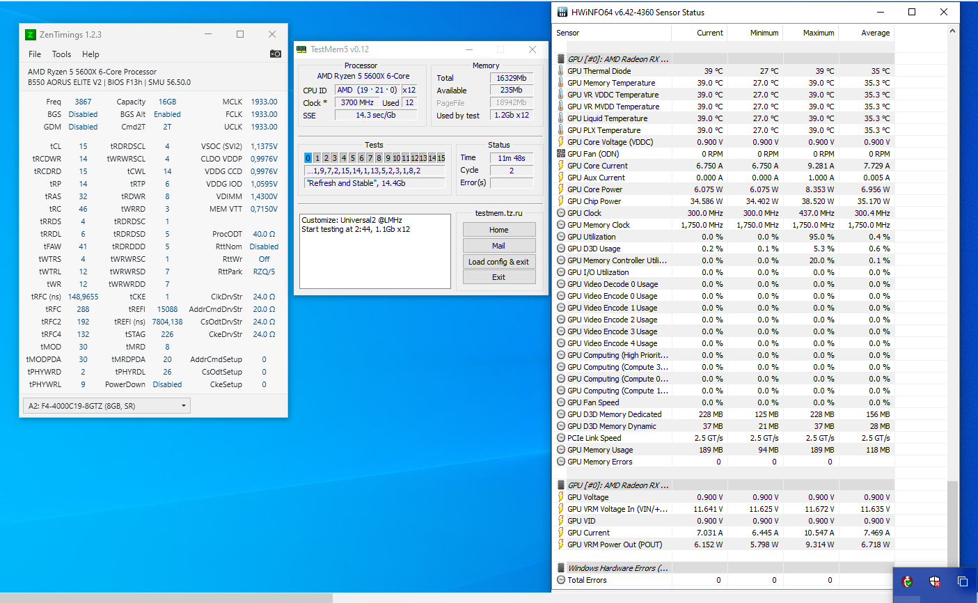 Да она и на tRCDRD 14 нормально заводится . только в тестмем начинают проскакивать ошибки минут через 5 .Пробовал поднимать напряжение в плоть до 1.48 не помогает.