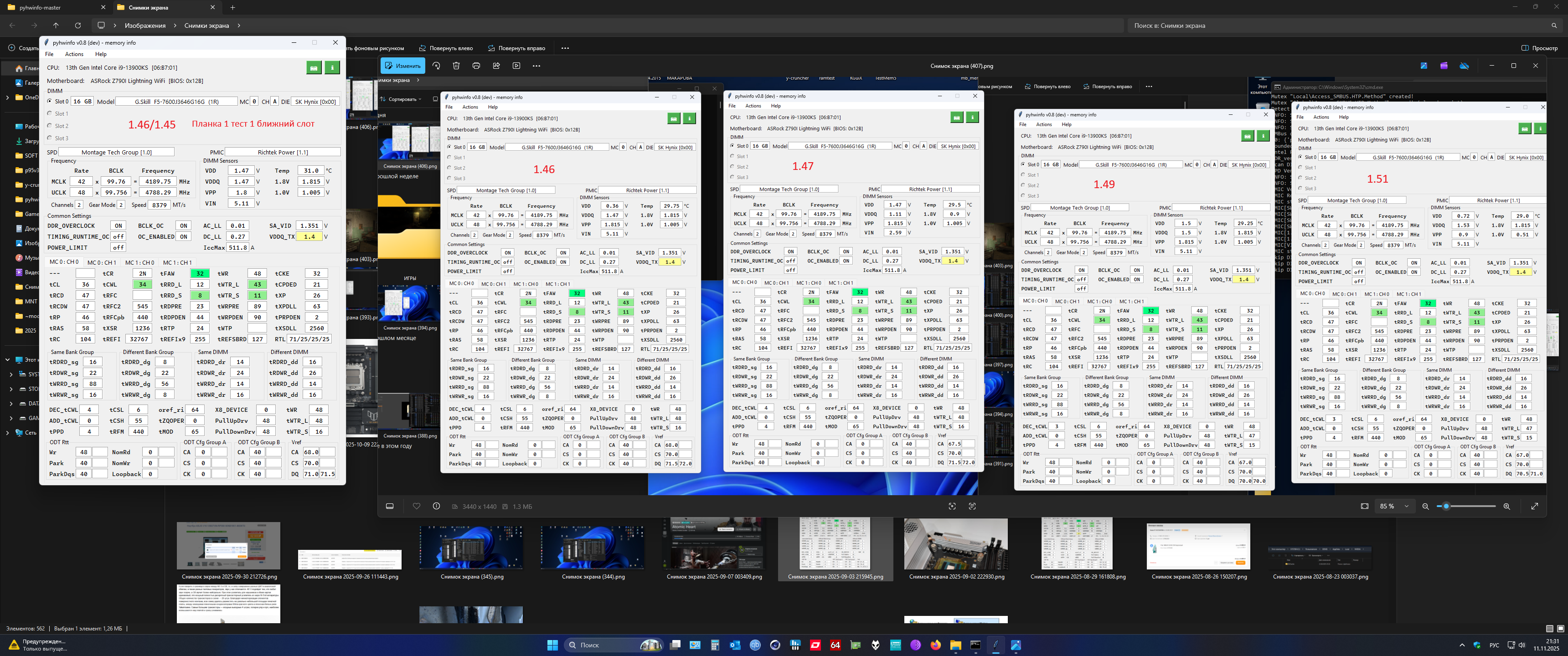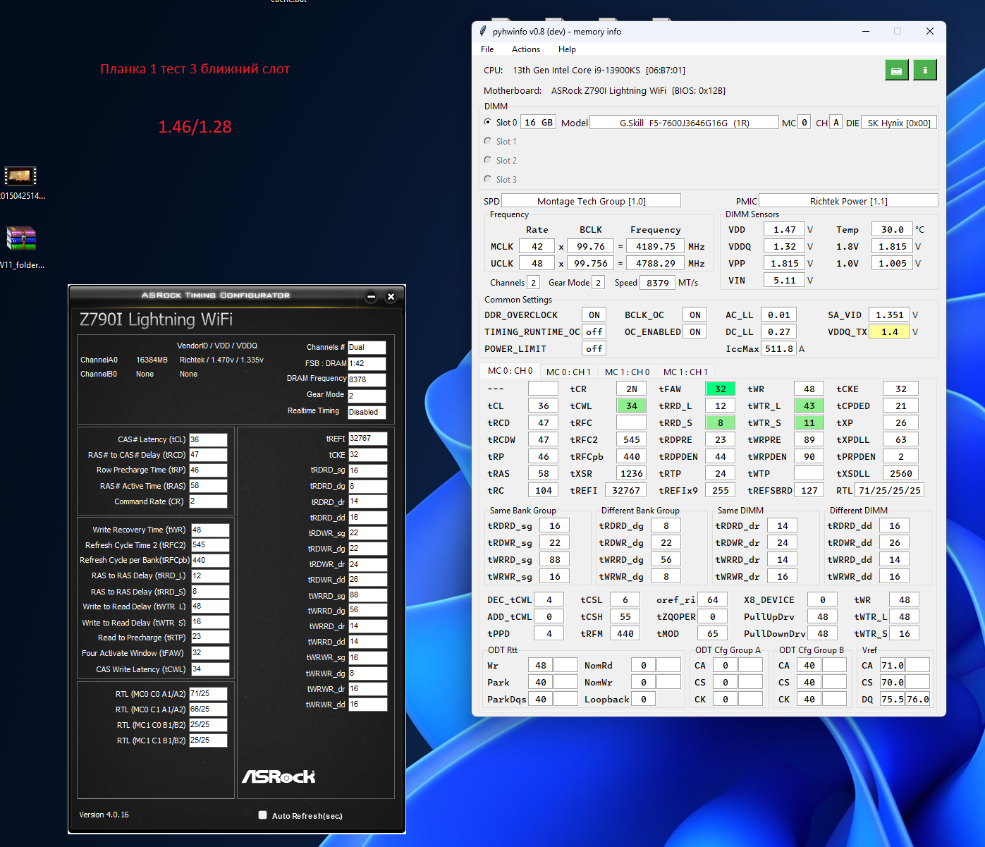 2.1 Пмик отдуплился в дальнем слоте, и стало возможным снизиться до 1.46/1.38, может даже 1.37. Можно пару раз было зайти под 1.34, но бсод почти сразу. 1.38 всегда успешны. Ниже - рандом. И теперь главное - pyhwinfo выдает ошибку в дальнем слоте, никогда нормально не работает, забегая вперед, с планкой 2 тоже.