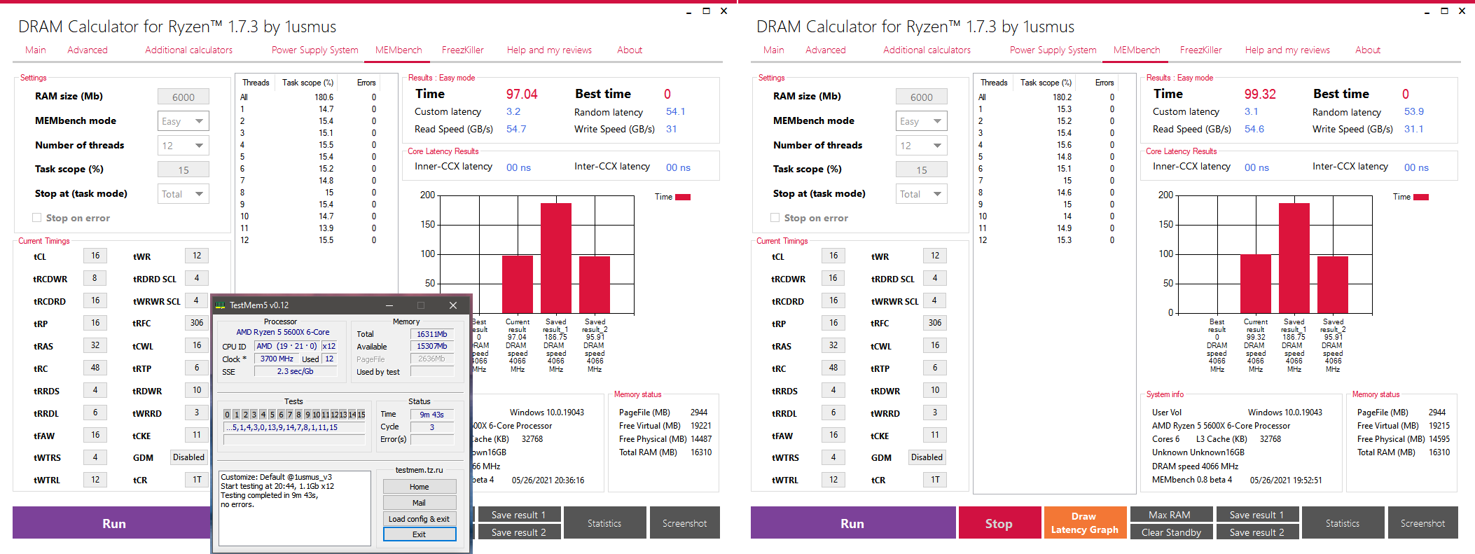 По сути у меня два результата на частоте 4000 и шине 2000 проц. 5800х разница между ними небольшая в одном пониже напряжение и чуть прослабленные вторичные тайминги по производительности, со вторым результатом наоборот, разница между ними результатами в латентности в 1-1.5нс судя по аиде по записи/чтении там мизер на уровне погрешности. Думаю первый вариант оставить с пониженным напряжением, но хочу понять что можно улучшить, где реальный будет профит, если ещё что-то подкрутить. Так же пока не пробовал основательно настроить под ОЗУ 4200 и шину 2100 , но на авто настройках пускается правдо автомат дикие тайминги ставит, где латентность улетает за 140 нс , грубая настройка на скорую руку результата не дает, отказ пускаться с 3-м ребутом с скидыванием настроек, т.е. там ещё труднее настроить.