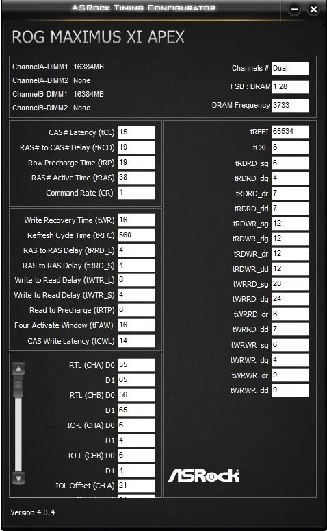Начните с RCD, CL. Не обязательно должны быть одинаковыми, обычно CL идёт меньше чем RCD. RAS сразу пробуйте как RCD+CL+4, до этого значения от него существенная разница, дальше меньше. CWL<=CL. Допустимые значения 9,10,11,12,14,16,18,20. RP можете выставить по RCD, если пойдёт меньше - тоже неплохо, не уверен правда насчёт смысла. RTP без формул. Если не идёт вниз можно попробовать поднять чуть чуть RP. В DDR4 явно связан с WR соотношением 2 к 1 (например WR20\RTP10), физически хранится одно значения и в зависимости от операции интерпретируется. Скрутите FAW до 16(так и оставьте если работает). С таким FAW скручивайте RRD(оба, L обычно больше чем S), возможно поедут на 4 оба. Если до 4 не удалось спустить поднимите FAW до уровня RRDL*4 и попробуйте ещё, хотя это скорее всего уже почти предел. Обычно L>=S. L - SG(Same Group). S - DG(Different Group) Напр. RRD_L>=RRD_S. CKE=5 СCDL>=4 RDRD_DD и прочие подобные можно проигнорировать если у вас нет двух планок на один канал (4 планки). DD-Different Dimm. Тоже самое с DR-Different Rank если у вас одноранговая память. RDWR_SG(DG) и подобные сочетания скручивайте до минимальных рабочих, потом накиньте сверху +2. Как уже отметил обычно SG>=DG. WTR не трогайте он сам спустится когда будете скидывать WRRD_SG(DG) и прочие подобные. Если сам меньше не стал тогда руками скидывать. WR снижать через WRPRE если есть. Если нет или не снижает WR, То скрутите его скажем до 12 или +4 от рабочего, потом дожмёте если не лень будет. RFC явных формул нет, крутить после всего списка сверху. Не пытайтесь найти его минимальное значение если не хотите чтобы память начинала сыпать ошибками от любого чиха. найдите пограничное со стабильностью значение и накиньте сверху 20 или сразу 40. Может реагировать на RAS+RP, RRD, FAW, причём в обе стороны (то есть может "сломаться" если задрать названные), а может и не реагировать... REFi больше лучше. Связан с RFC. REFI сколько память "работает" - RFC сколько "отдыхает". Оба тайминга лучше не пытаться найти предельное значение.Заметно реагируют на температуру. Многие тайминги отзываются и на температуру и на напряжение. Поскольку напряжение может как позволить снизить тайминг, так и увеличить температуру, то середину можно искать очень долго, поэтому лучше бы вовремя остановится. Тестируйте тщательно с перезагрузками, сном, холодным стартом. RTL и IOL вам кто-то другой пусть советует как настраивать, от них у меня голова болеть начинает...