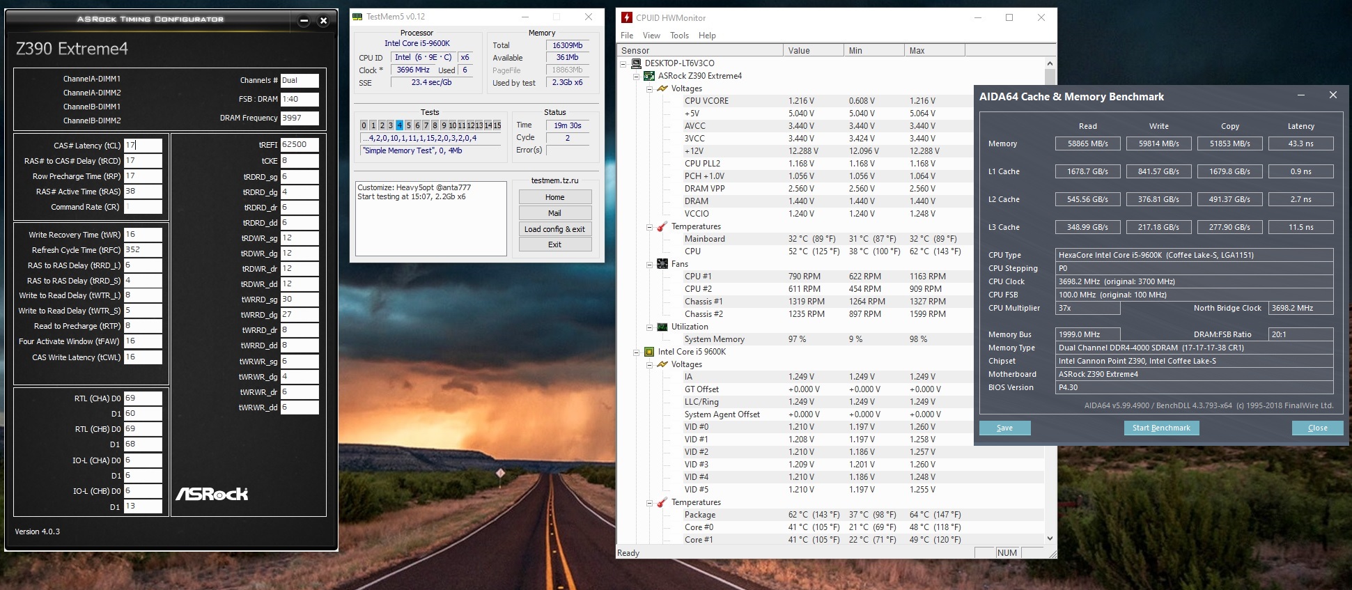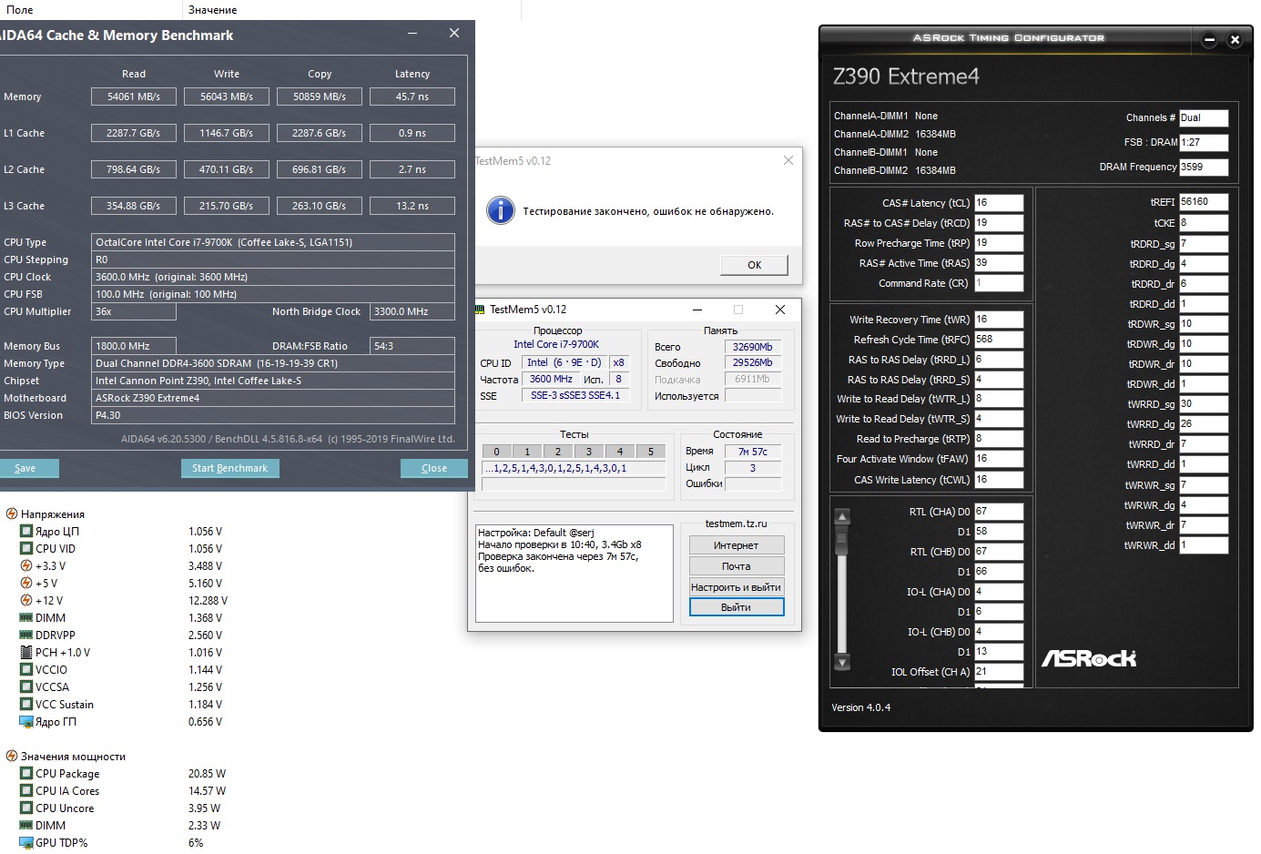 Поделитесь советом если тут что-то лучше можно сделать, ia/so 1.22 в биосе, но проги мониторинга говорят 1,24, на память ставил 1,43, пишет 1,44, проц i5 9600K, память GSkill TridentZ 3866, самсунг Bdie, Asrock Z390 Extreme4