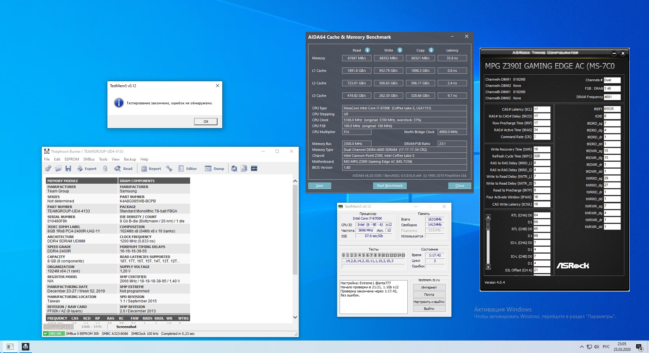 Ну не плохие модули попались. Стартует 4000 cr1 16-16-16-36, но напругу надо поднимать ибо на седьмой секунде ошибки. Можно "ослабить" dr-ы да остальное, может займусь. Но скорее всего надо будет 16-17-17-37. Time (%)=300, Cycles=2