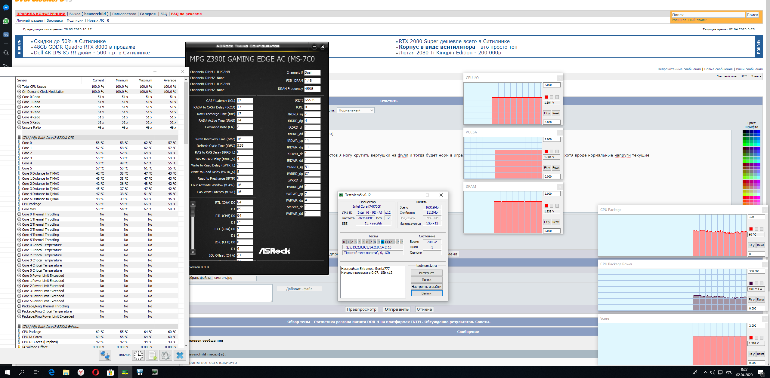 Напряжения на процессоре при разгоне памяти