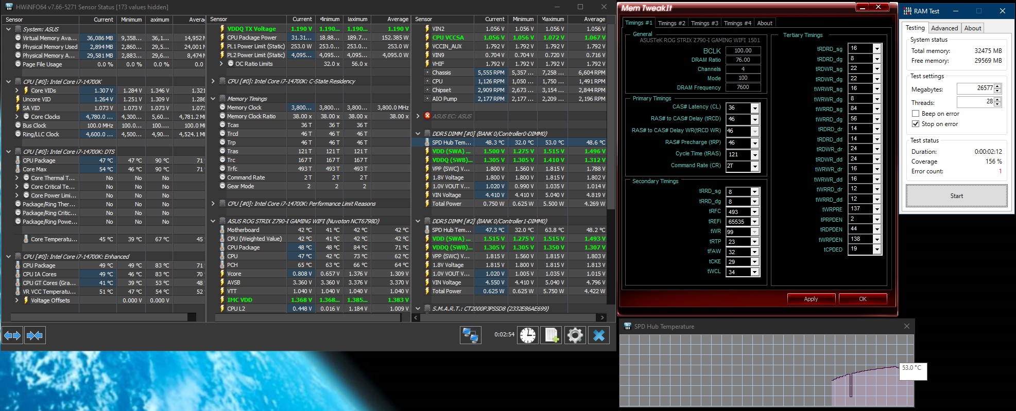 Мой опыт поиска напряжений на Z790 (не увенчался успехом, тест падает после 10-20 минут. Увеличивать ли первички?).