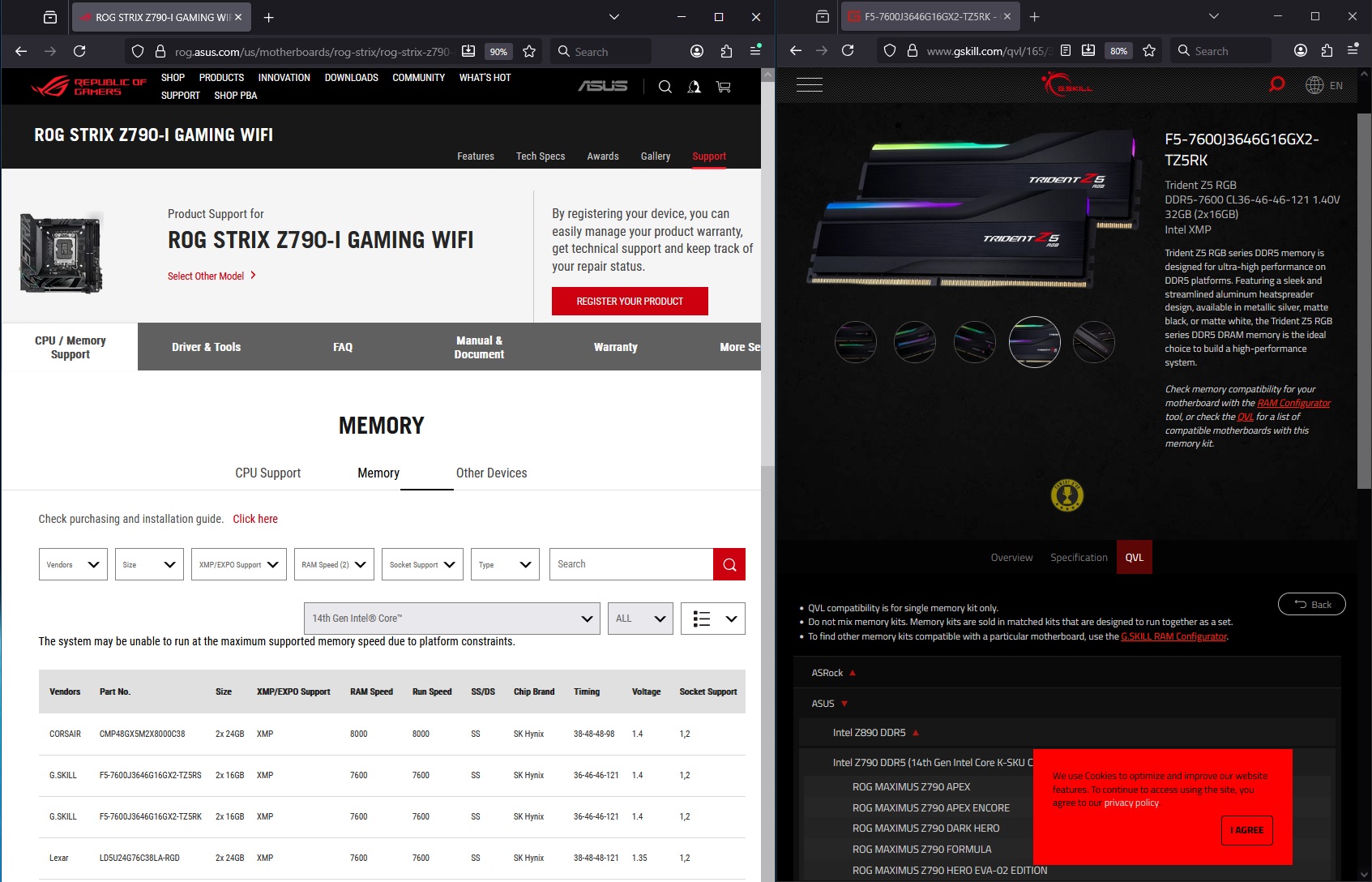 Память указана (с оговорками), как совместимая у производителя платы, но производитель памяти G.Skill в отказ - только Апекс Тахион. Г-скилл ДДР4 делали норм, а ДДР5 - как-то не всегда.