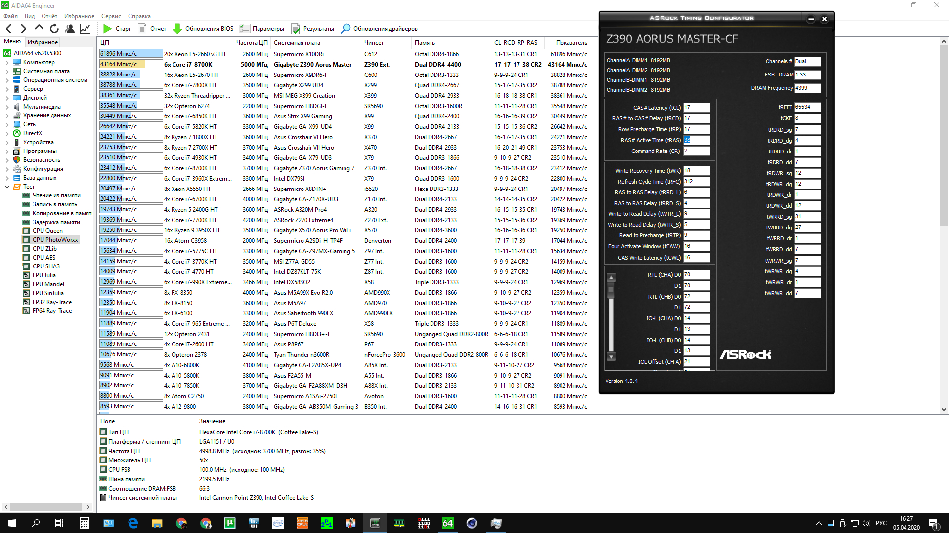 Разгон памяти у современной DDR4 (16 банков,RRDS=4,FAW=16,BL=8) эффективен только при tRC<=64,если каждый новый блок чтения происходит с разных банков памяти. Для 4-х слотовых плат при разгоне желательно в биосе отключить неиспользуемые слоты. Предположительно для максимальной производительности памяти значение tRFC в тактах для 8-Гбитных чипов должно быть кратно 8,а для 16-Гбитных чипов - 16. Если это правило не соблюдать, то будут вставлены лишние такты при каждом цикле обновления памяти. Для желающих максимально снизить tRFC. Делим tRFC на сумму tRCD,tRTP и tRP. Если результат ближе к 4, то снижать tRFC можно по 4 такта. Если результат ближе к 2, то снижать tRFC можно по 2 такта. Это связано с тем, что обновление происходит субмассивами, которые обязательно кратны 2.