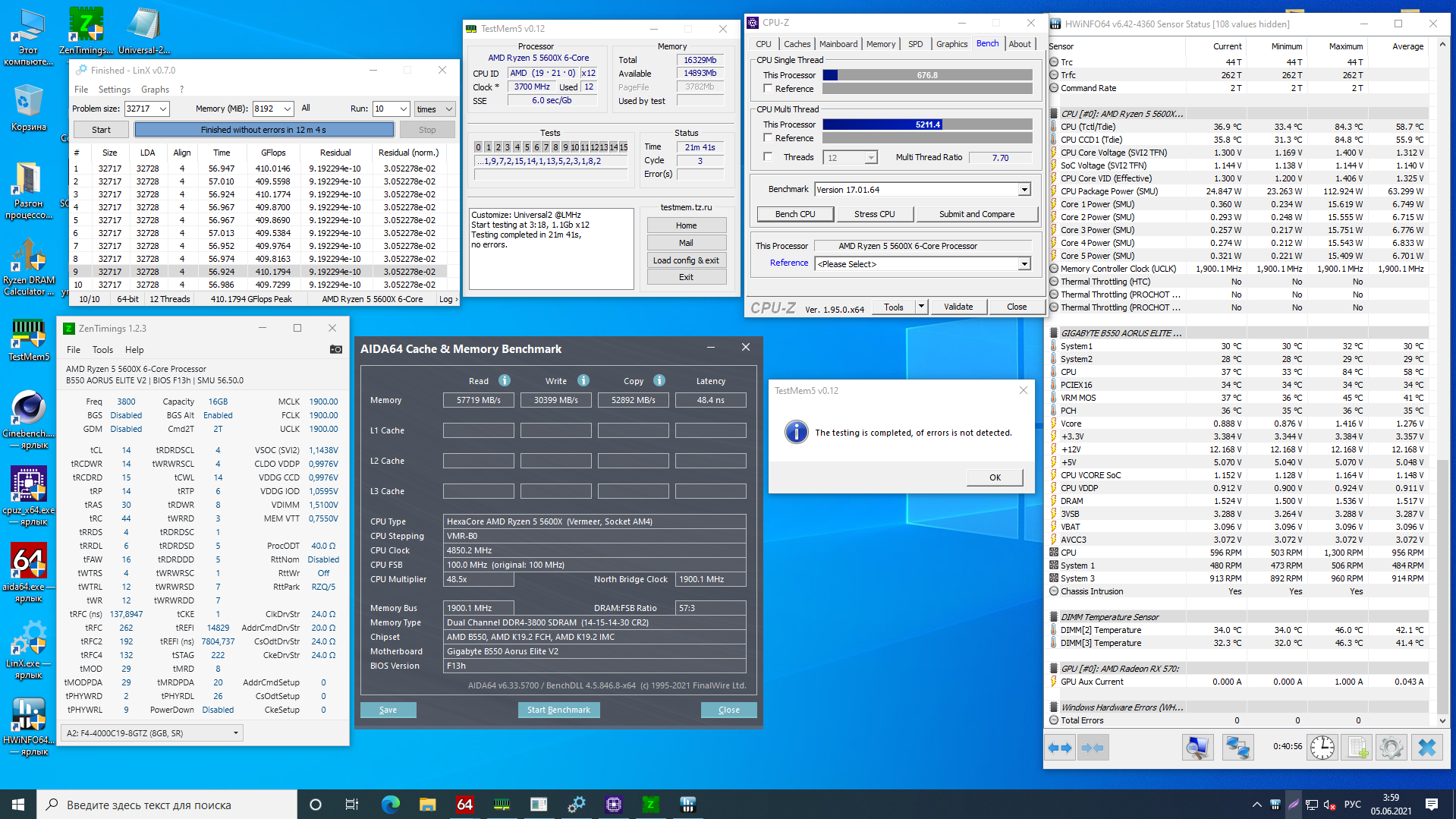 Комрады, помогите пожалуйста. Я уже в отчаянии. Имеется система MSI x571 Gaming Pro Carbon Wi-Fi, Ryzen 7 3700x (Termalright True Spirit 140), изначально был комплект 32 Гб Kingston HyperX FURY Black RGB [HX434C16FB3AK2/32]. Система (винда 10, все обновления стоят) при большой длительной нагрузке на память начала падать в синий экран. Протестировал мемтестом через загрузочную флешку. Ошибки в разном количестве на любых настройках памяти (процессор стоит на авто, разгона нет) (хмп профиль, вручную параметры хмп, параметры тайминг калькулятора, все на авто - разнится только количество ошибок). Сдал комлект на диагностику в магазин, подтвердили дефект, заменил память на G.Skill TRIDENT Z Neo RGB [F4-3600C18Q-64GTZN] 64 Гб (4*16). Теперь то же самое, разве что по ощущениям чуть дольше держится до синего экрана, но все равно падает система. Пробовал все на авто, просто профиль хмп, вручную параметры из хмп. Тестировал в testmem V. Выдало 2 ошибки (не могу понять, где посмотреть какие). Я подозреваю, что что-то надо настроить вручную. Но я не понимаю что? Я уже три недели это победить не могу. Помогите, проведите дурака за руку по настройкам и тестам. Если нужна какая-то дополнительная информация - я с радостью ее дам, только выручите. Интересует не разгон, а фактически любая стабильная работа без синих экранов. ГРОМАДНОЕ СПАСИБО заранее всем неравнодушным!