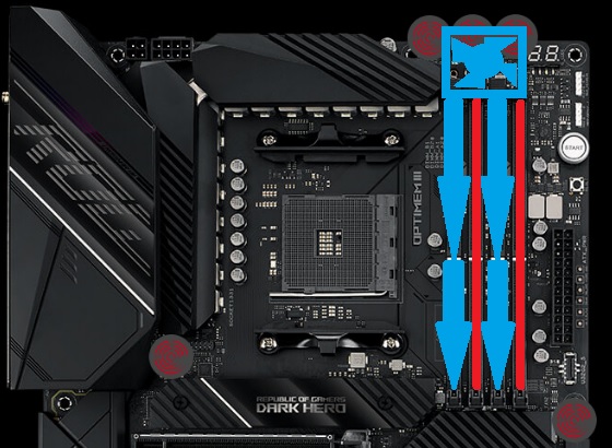 6. Худший модуль памяти (требующий большего напряжения для стабильного разгона) должен стоять ближе к процессору в слоте A2.