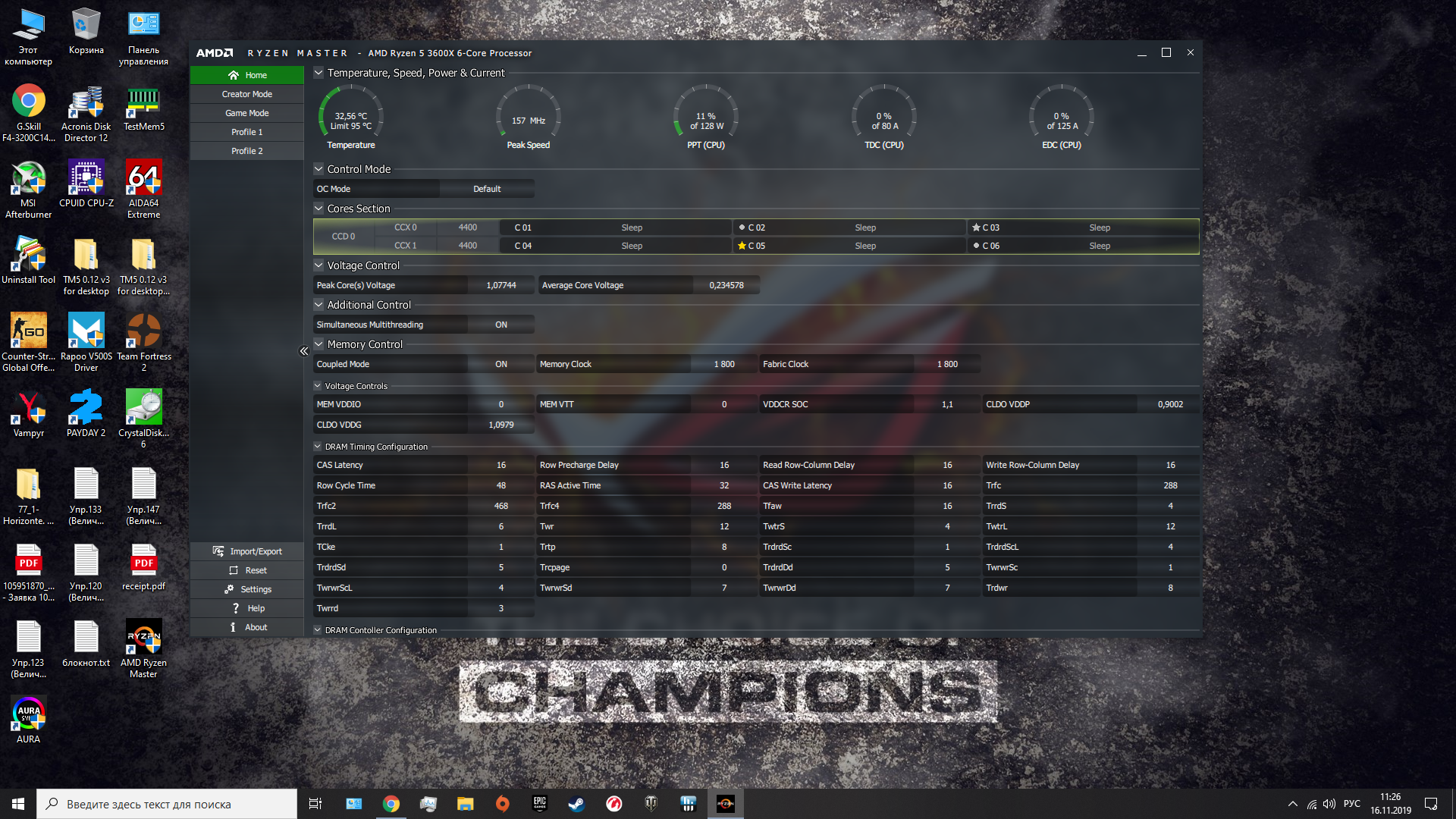 И если это интересно, то G.Skill Trident Z 32gb(2x16Гб) kit, F4-3200C14D032GTZSW DDR4 завелась спокойно на xmp профиле на комплектующих из профиля. Вообще ничего не трогал кроме включения использования xmp профилей.