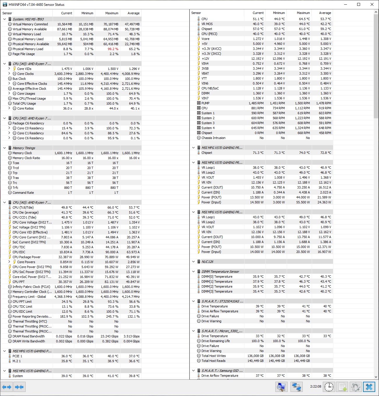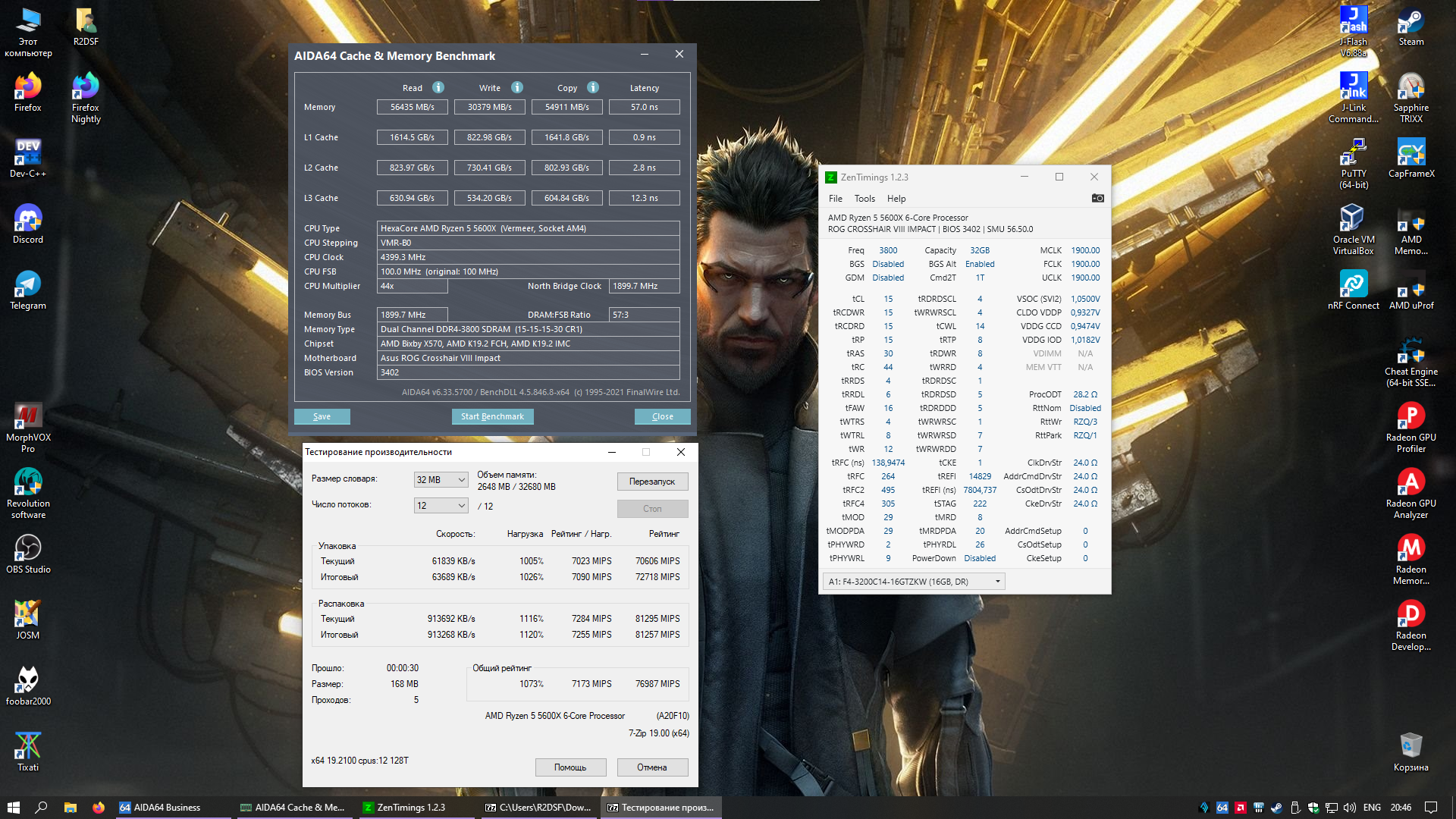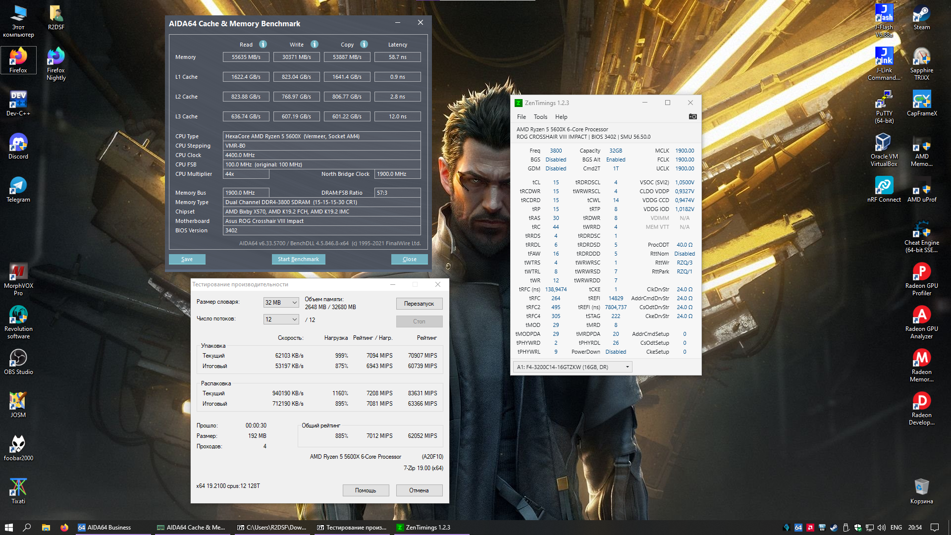 Решил добавить свой результат для статистики. Память Neo Forza ENCKE [NMUD416E82-3600DC20] 32 ГБ, нагуглил что внутри Hynix AFR. На моем 2700 xmp профиль в 3600 МГц не загрузился, приспустил тайминги немного, но Testmem5 почти сразу сыпал ошибками, пришлось скинуть до 3466 Мгц. Но не смотря на это, учитывая цену в 11500р, результатом доволен.