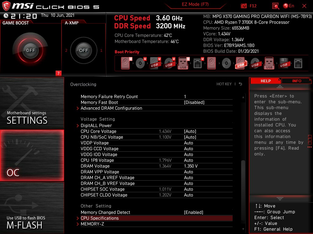 8. Если нет бута на частоте памяти 3800Mhz, то проверяем возможности IF вашего CPU, для этого выставляем частоту памяти на 3200Mhz, а IF например на 1900, пробуем загрузиться...
