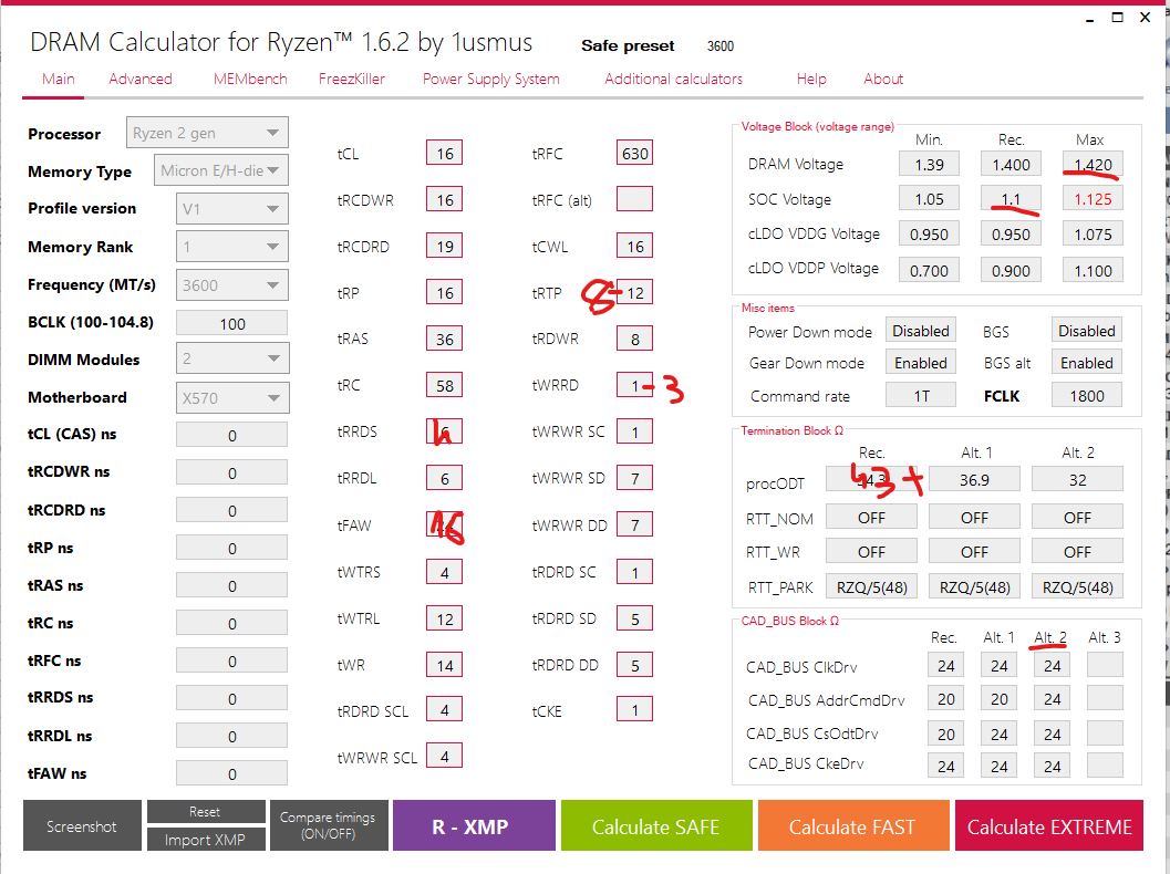 в итоге завелась память без ошибок на 3600, но только на 1.44в (на 1.43 уже с ошибками) и с 16-19-16-16-36-58 и trfc 660... надо наверное дальше докручивать 3533. Сейчас несколько раз прогнал tm5 с такими таймингами, все норм. Twrwrsd\dd и Trdrdsd\dd понижать теперь пробовать или нет смысла?