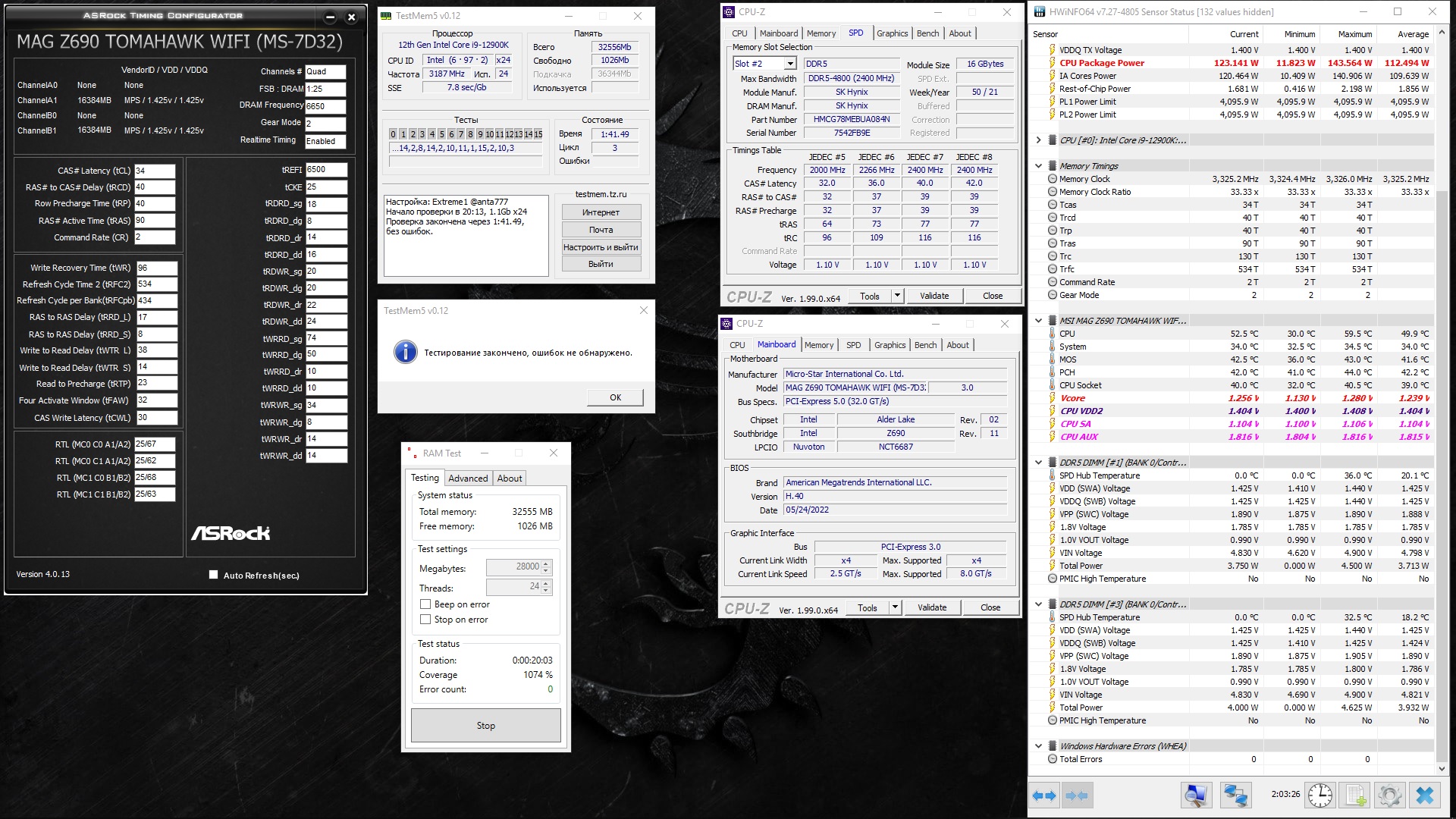 Взял тут на пробу MSI Z690 Unify (обычный, не Х и не i). Плюс Хуниксов еще пару комплектов, попробую, может что-то поменялось, глядишь на 4х слотах и 6600-6800 поднимется (да ну, вряд ли).