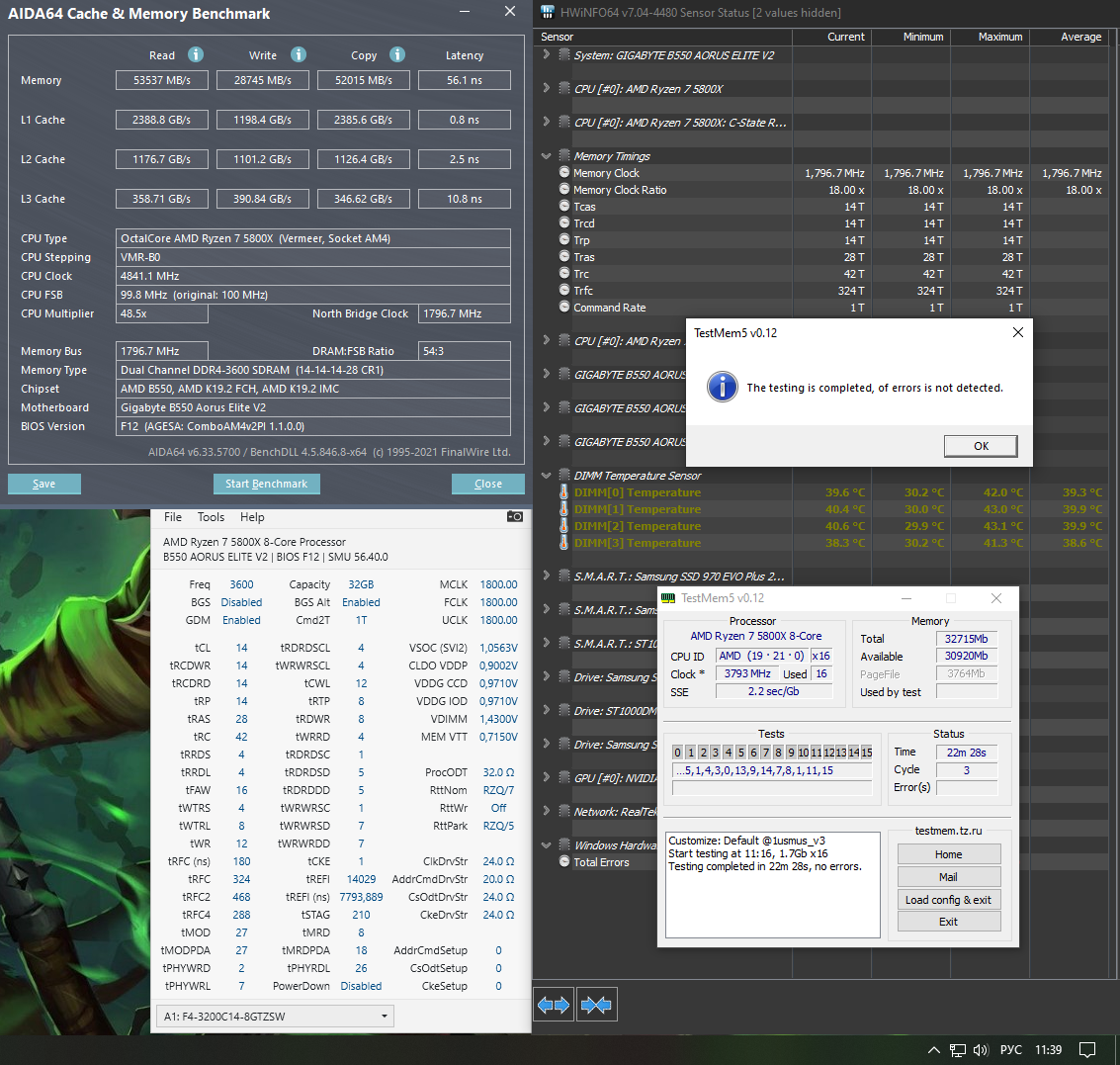 К сожалению, для показа данной ситуации мне нужно будет отключить кондиционер и снова гонять память на н-ное число тестов для прогрева, попутно записывая сам процесс прохождения тестов в видеоформате. Иначе я даже не представляю, как показать. Давеча в теме кто-то писал, что у него на ~55 на би-дайях ошибки лезут, формучане удивлялись. Опять же, то, что выводится в hwinfo - известно только разработчикам и, вероятно, изготовителям плашек. Как именно она там считается, я сказать не могу. Ну или чипы такие слабые попались, 3600C16-кит, например, апрель 2021. Может как-то и связано.