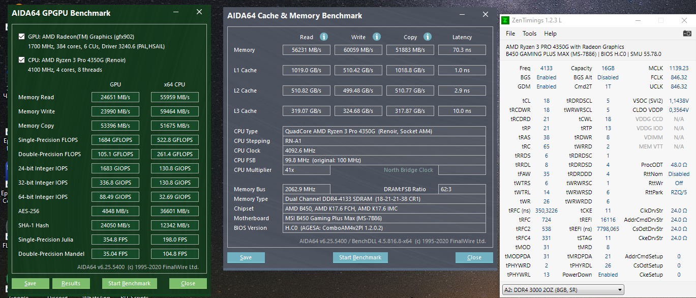 Всем привет, имеется следующий конфиг: ryzen 3 4350g a-data xpg gammix d10 - hynix cjr 3000 mghz cl 16 Разогнал до 4133, но столкнулся с сильными просадками по скорости чтения и копирования. Тайминги подтянул, но побороть их не удалось. Подскажите, куда копать? (скрин ниже)