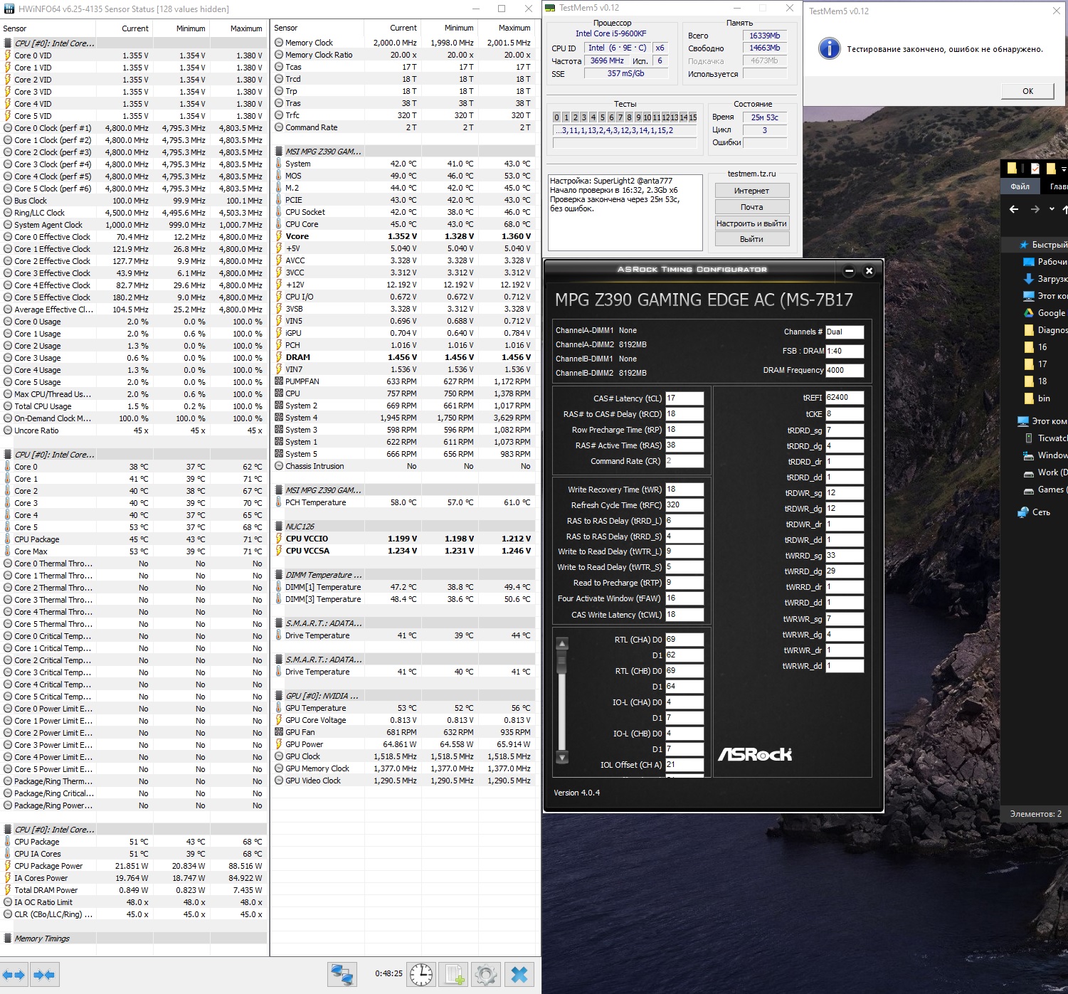 MeDd Максимальная температура 49-51 градус. Возможно. pakhtunov Не прошел твои рекомендации. Обычным Light1@anta777 через 10 мин - ошибка. Температура 49 максимум. Грешить на температуру??? Чуть другой пресет... Ошибка через 8 мин температура 47,8 гр... Какая температура нормальная для памяти?