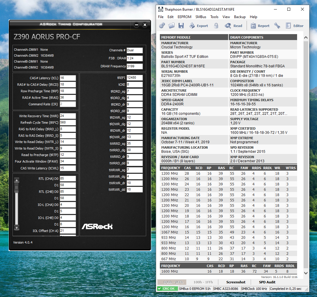 Заказал себе такие планки - https://www.newegg.com/ballistix-16gb-2 ... 6820164143 судя по артиклю BLS2K8G4D32AESTK там свежайший Micron E-Die, который держит 3667CL14. Получу, протестирую, отпишусь