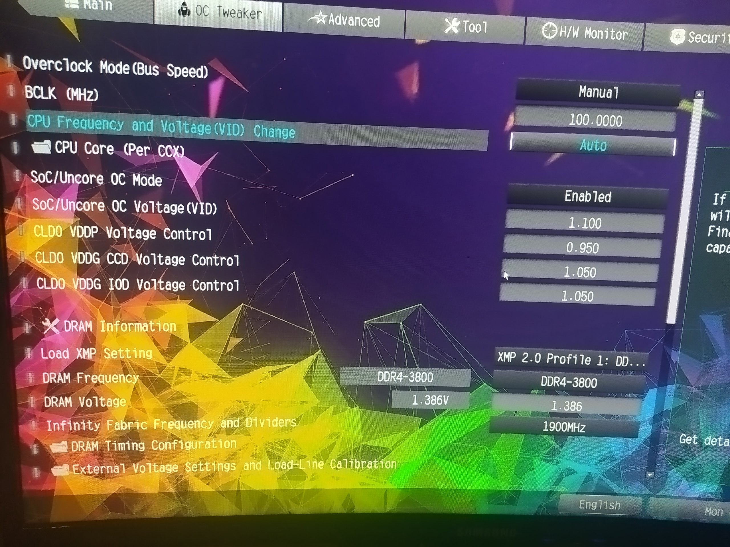 8. Если нет бута на частоте памяти 3800Mhz, то проверяем возможности IF вашего CPU, для этого выставляем частоту памяти на 3200Mhz, а IF например на 1900, пробуем загрузиться...