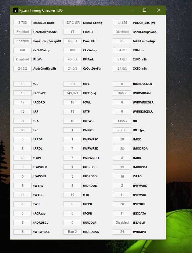 Yohan_06 сделай скрин райзен мастера, там тайминги нормально будет видно. За cl14 наваливать 1.5+ на память смысла нет, на сl16 будет 1.45 или ниже, латенси останется такой же, на игры не повлияет. Ечли обдува нормального нет, то от нагрева может просаживаться. Посмотри spread spectrum on/off