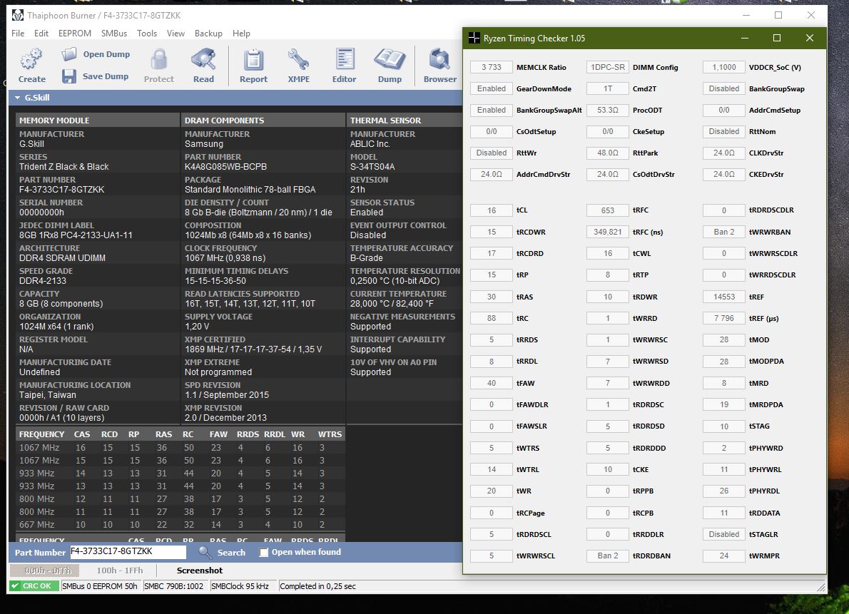 Начну с того, что проц 2700x, мать ROG STRIX X470-I GAMING, оператива G.Skill Trident Z F4-3733C17-8GTZKK (чипы Samsung B-die). Вот такие настройки предварительно, черновые (скин приложил), система ведёт себя стабильно, но в Мемтест ошибок валом, начиная прямо со второй минуты, перезагружается отлично, без синих экранов и прочего, напряжение на оперативку, хоть 1.41-хоть 1.42 ставь разницы нету! Soc 1.1, ставил тоже разный.. 3800 ни в какую не держит, штурмовал 3800 наз 10:), стабильность пропадает на 3800, синие экраны вылеты из Хрома, тайминги разные пробовал и напряжения. Блин не знаю куда копать, пробовал уже думаю всё, а так и 3933 старт есть, но толку! Нужна какая то определённая комбинация, но я её найти не могу) На частоте 3733 с таймингами 17-17-17-33, напряжение ставил разное, всё отлично и близок был к стабильности, за 2 часа одну ошибку ловил в Мемтест, решил под ужмать тайминги и опять ловлю стабильность. Оперативку гоню уже 3 недели, уже реально надоело, собственно по этому и решил обратиться к вам за помощью, так стараюсь всё делать сам, но уже нету терпения) Моя эта оперативка на Интель свободно держала 4100, с таймингами 17-17-17-29 и напряжением 1.39, и можно было ещё двинуть, но надоела она, мне и того хватало, оперативка отборная, было 5 комплектов, она оказалась самая лучшая из 5, остальные либо не могли того, что она, либо делали это на напряжении от 1.41. Стабильность лучше у меня на procodt 48, но комп выгружается иногда)))) изредка, но стабильность лучше... сейчас стоит 53. Не подскажите куда копать? Просто больше сил нету)