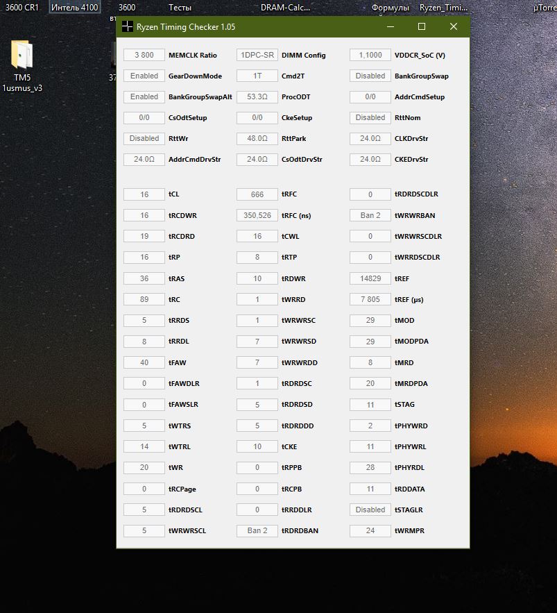 Так он 3733 может! Но тайминги 17-17-17-30, я просто решил тайминги подужмать и не могу стабильность словить) 3800 вот сейчас сижу на 3800, но стабильность непонятная, может синий экран отбить или Хрому перезапустить! Вот настройки на скине. Как PROCODT понизить не знаете? Я ставлю 48, а у меня комп перестаёт выгружаться, только на 53 работает и всё!