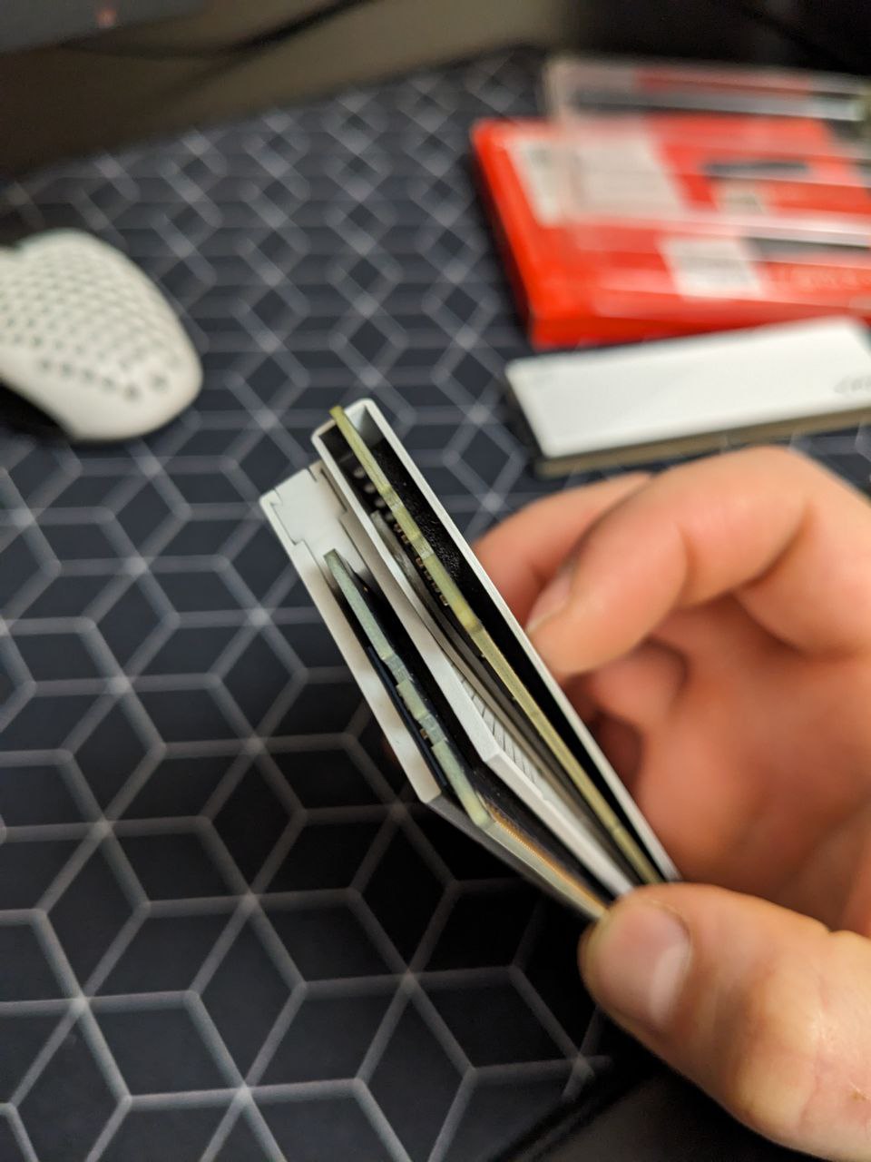 Ну и что... Пятница, утром включаю пк - не стартует. сброс до заводских, загрузка профиля 6200 cl30 - все ок. Суббота, утром включаю пк - не стартует. сброс до заводских, загрузка профиля 6200 cl30 - все ок. Воскресенье, утром включаю пк - он стартанул и все норм. днем многочасовые тесты гонял профиля 6200 cl30 - все ок (результаты выкладывал ранее) Понедельник, утром включаю пк - не стартует. решил не сбрасывать до заводских а поковырять текущий профиль и узнать почему с ним после ночи он не стартует. Решил начать с tRFC и поднял с 494 до 504 - не стартует, поднял до 512 - не стартует, вернул 494. Понизил вольтаж на памяти с 1.4 до 1.38 на VDD и 1.37 на VDDQ - пк стартанул. Забавная история, не нравится когда много напряжения или все же плата\биос брак ?
