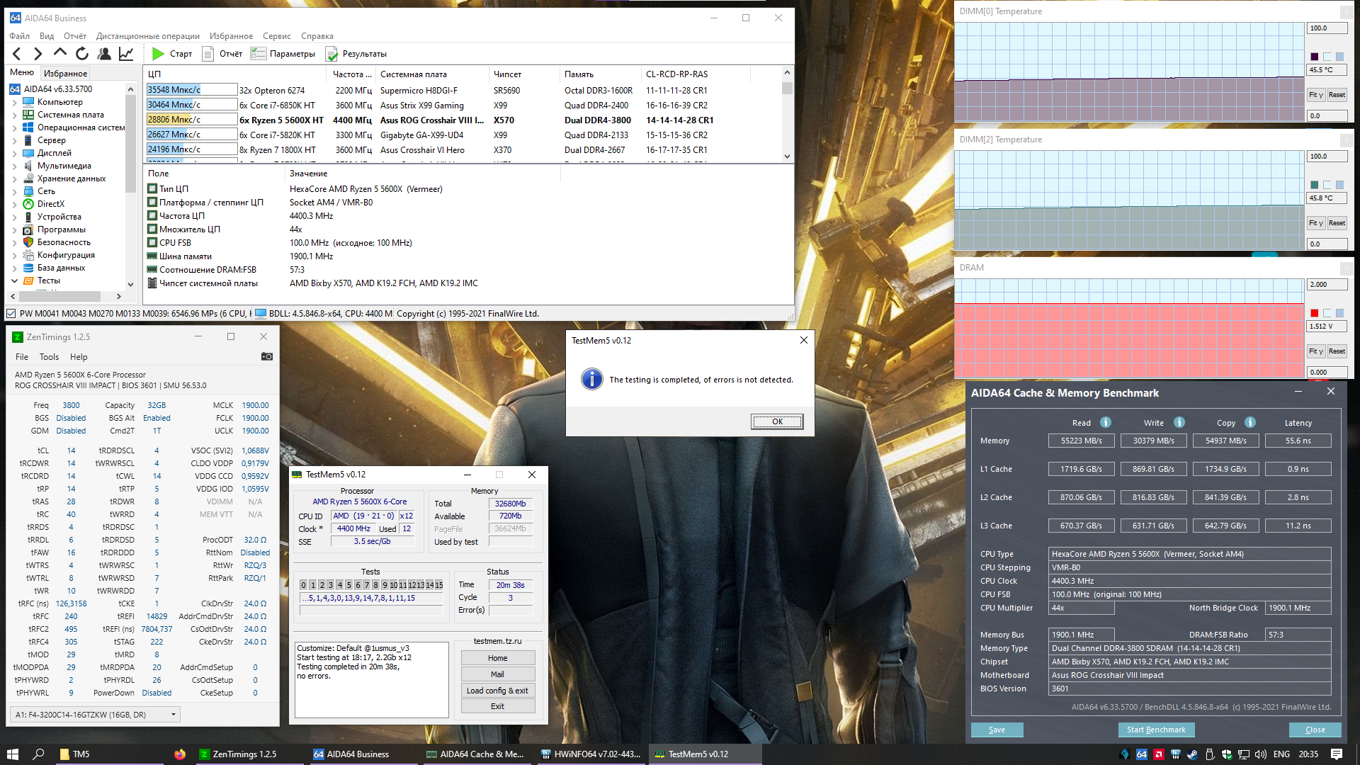 4. Перед настройкой частоты и таймингов рекомендуется установить принудительное охлаждения на модули памяти, особенно для памяти с чипами Samsung B-die, повышение температуры памяти выше 48°, может сопровождаться дополнительными ошибками, не связанными с неправильной настройкой таймингов, что затруднит их поиск и общую настройку памяти.