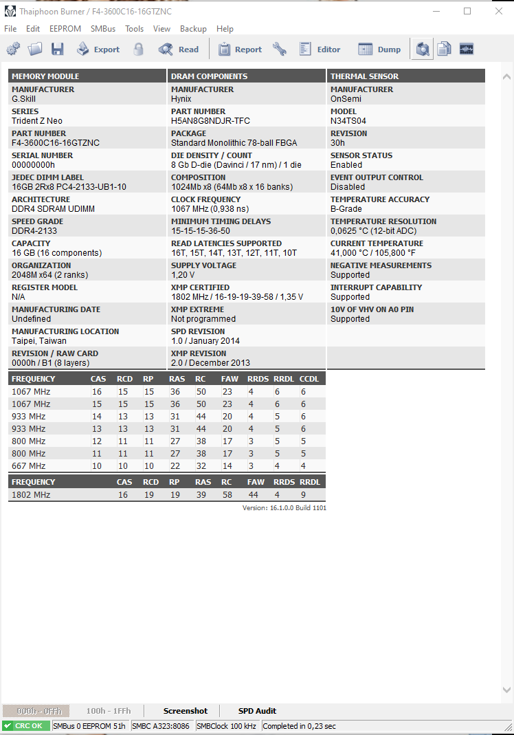 [img]Ссылка на скрин[/img] Для сбора статистики по установленным чипам памяти просьба прикладывать скрины программы Taiphoon Burner и указывать напряжения на DIMM, IO и SA![/color]