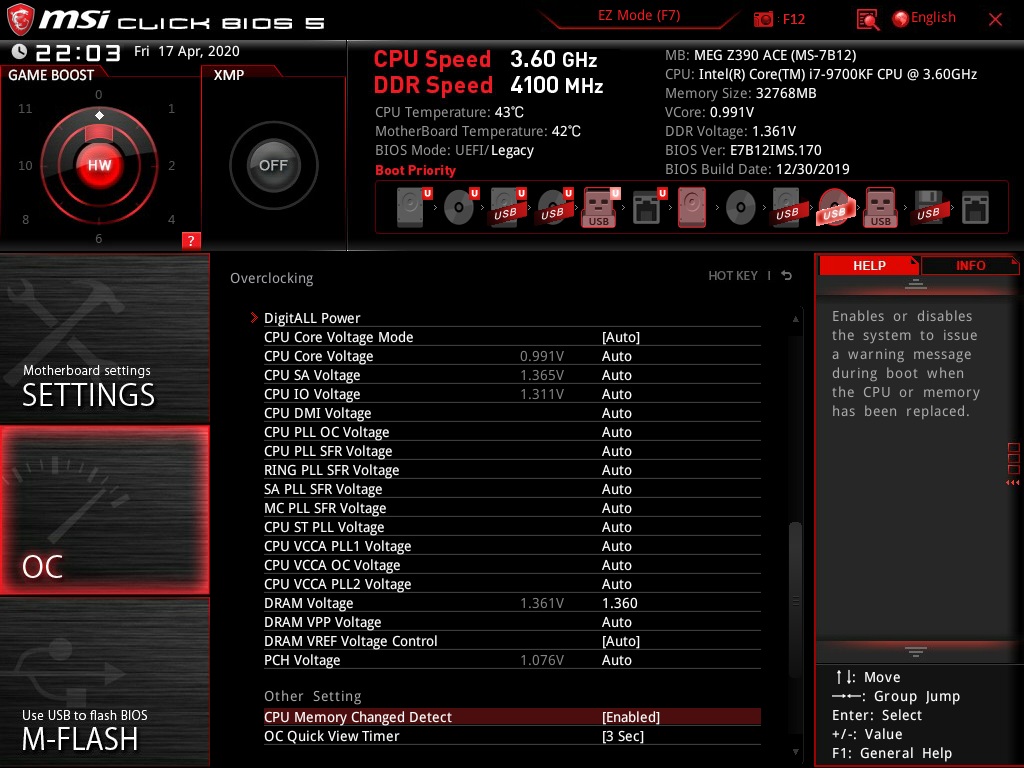 https://forums.overclockers.ru/download ... &mode=view вот как тут оставьте всё. 62000 - 65535, 376-360 - никакой разницы не заметите по производительности. Единственное можно попробовать 17-17-17-38 (не 36) и RDRD_sg 6. Остальные тайминги не ужимайте, от них никакого профита, если ниже ставить. И так на оптимальных значениях стоят.
